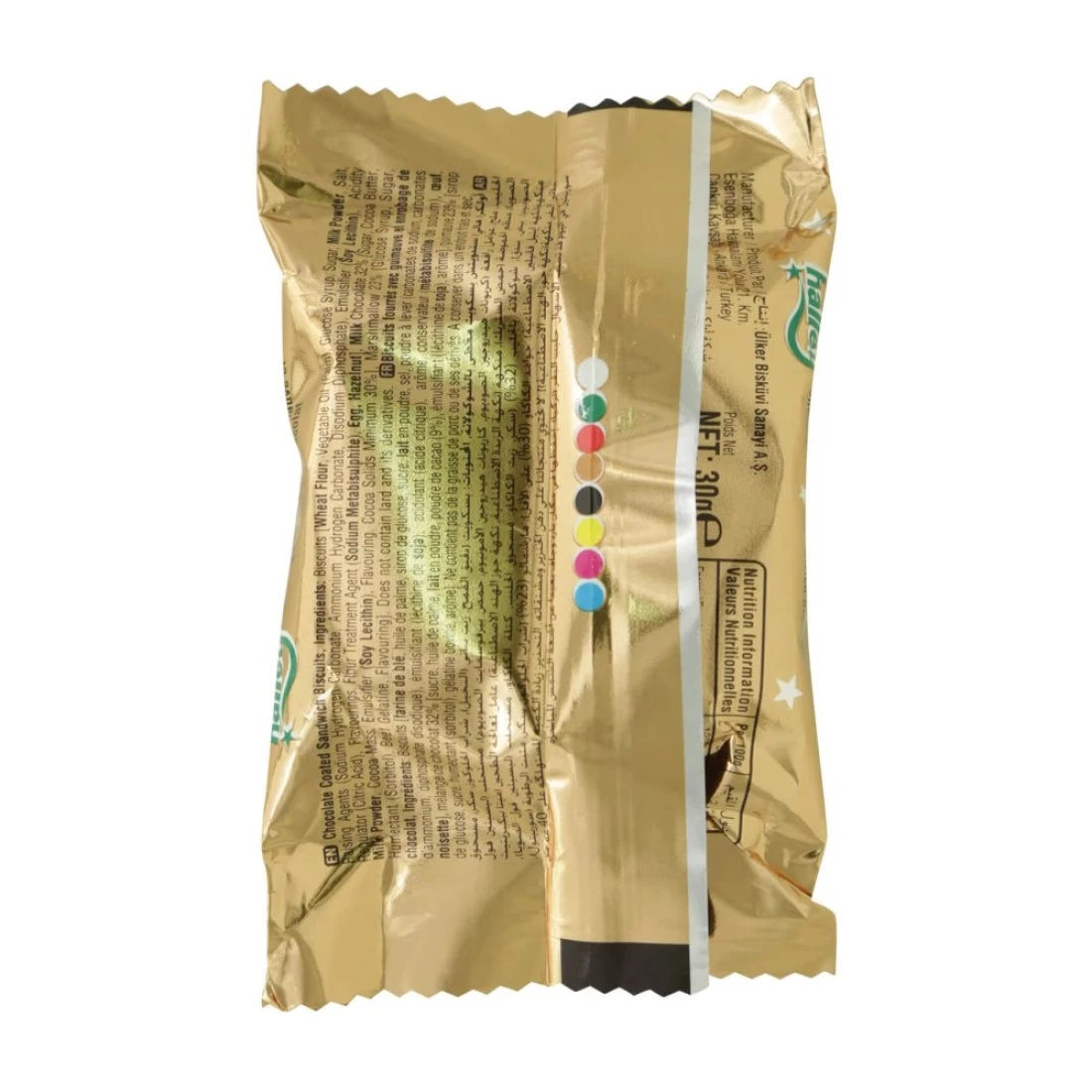 ingredients : بسكويت، دقيق قمح، زيت نباتي (نخيل)، مسحوق كاكاو (5٪)، شراب غلوكوز، سكر، لبن بودرة، ملح