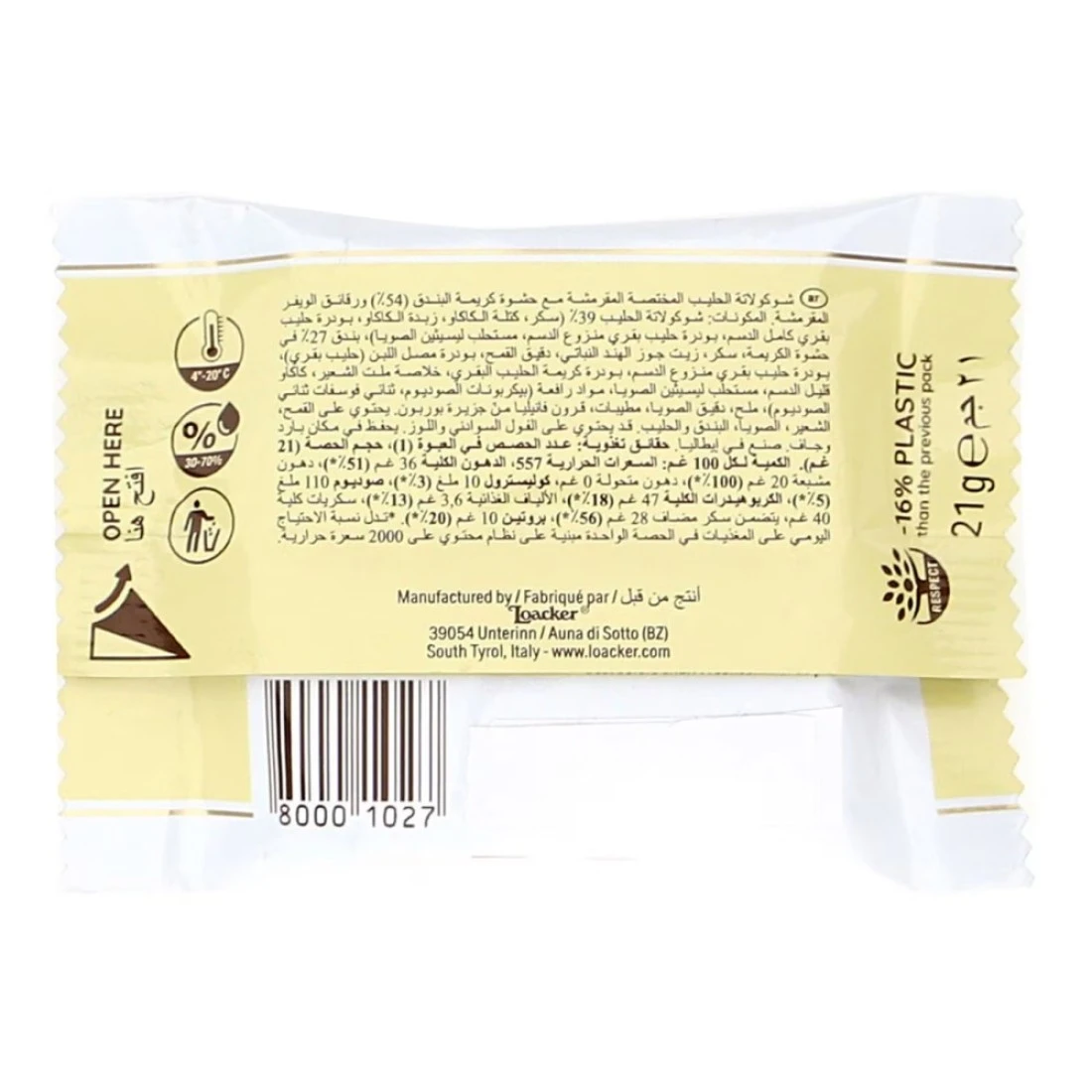 - تحتوي كل عبوة 21 غرام على توازن مثالي بين الويفر المقرمش وحشوة الشوكولاطه الناعمة