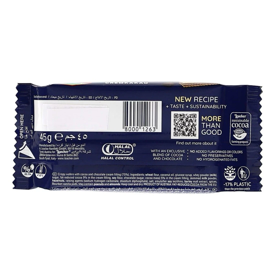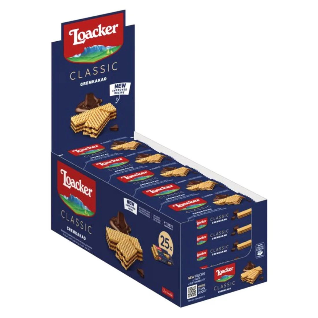 - يتم تعبئة رقائق Loacker Classic Cremkakao بطريقة مريحة لسهولة الوصول إليها والاستمتاع بها