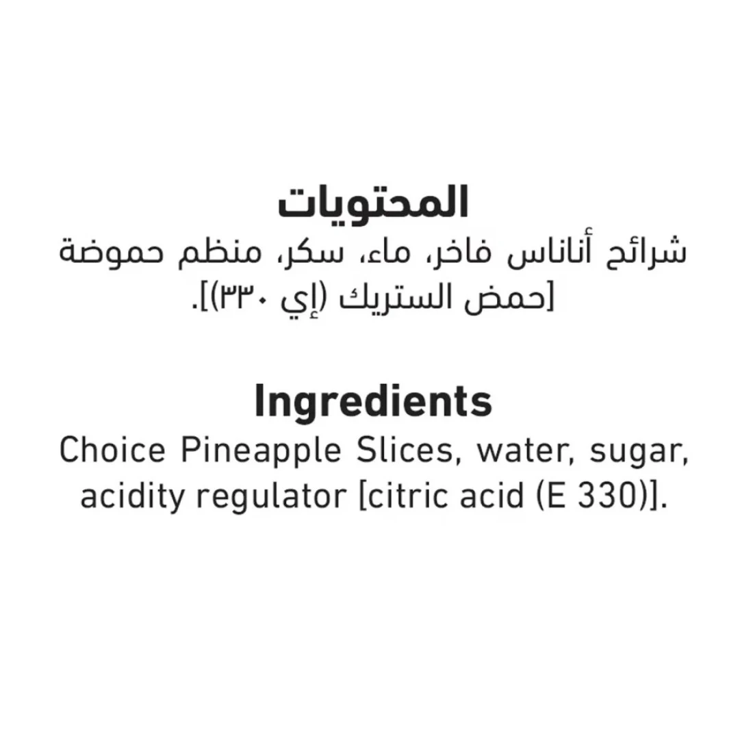 ingredients : شرائح أناناس من اختيارك ، ماء ، سكر ، حامض الستريك (إي 330)