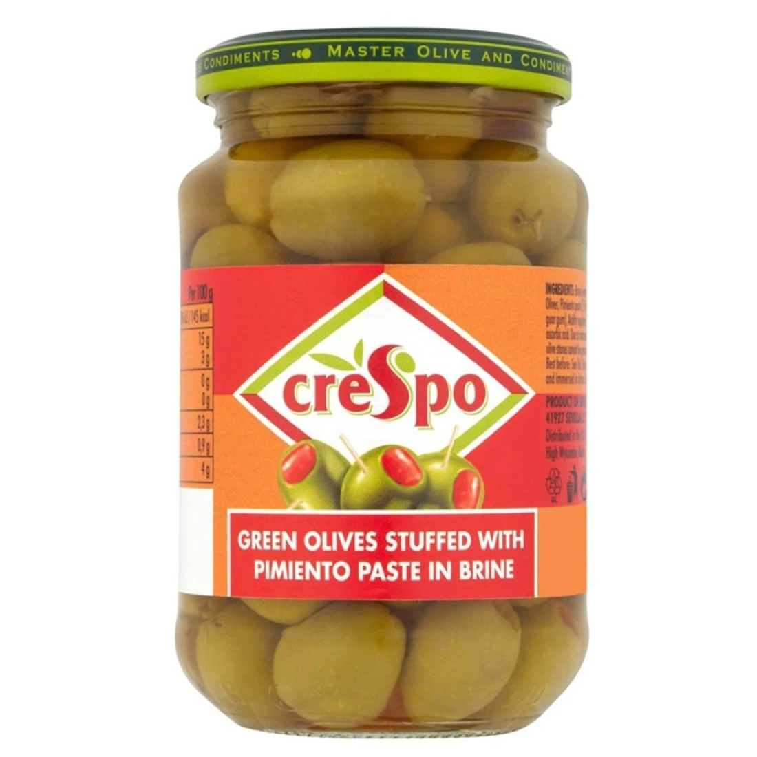 كريسبو زيتون أخضر محشو بمعجون الفلفل الحلو في محلول ملحي، 200 غرام