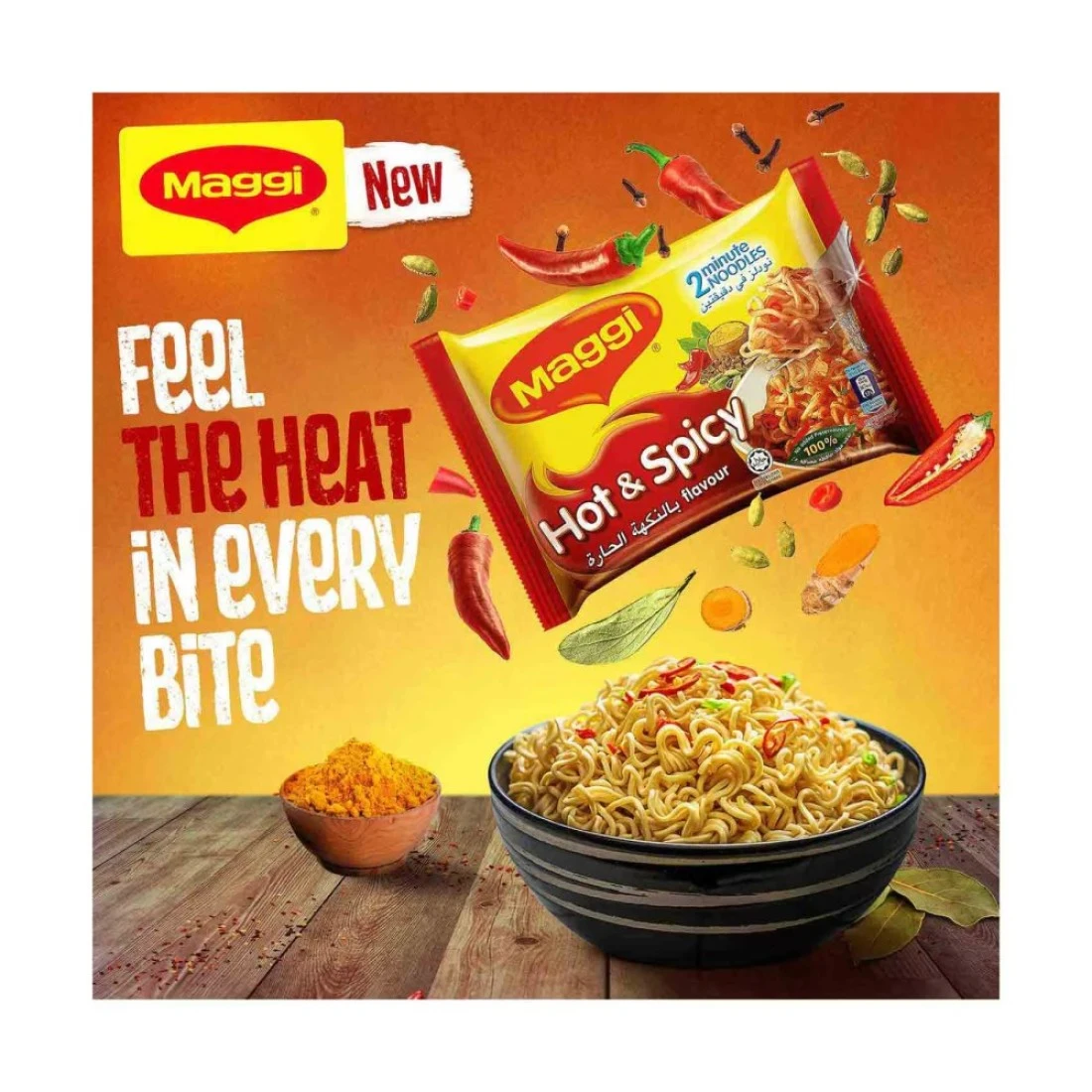 - انفجار النكهة: جرب المذاق الجريء والحار لنودلز نستله ماغي الحارة والمتبلة، المصنوعة بخبرة لإشباع رغبتك في تناول الصلصة الحارة