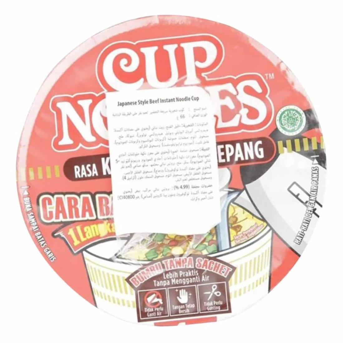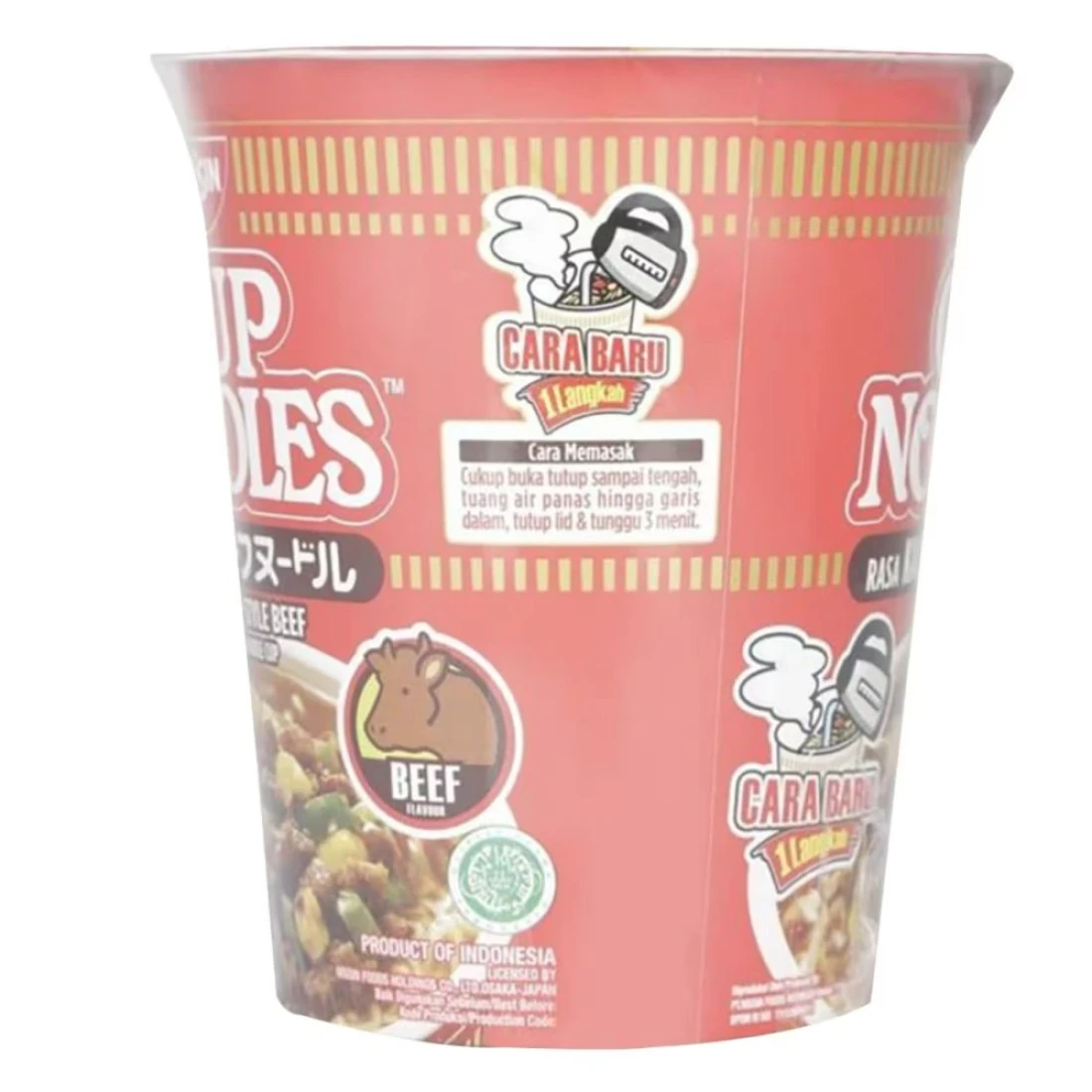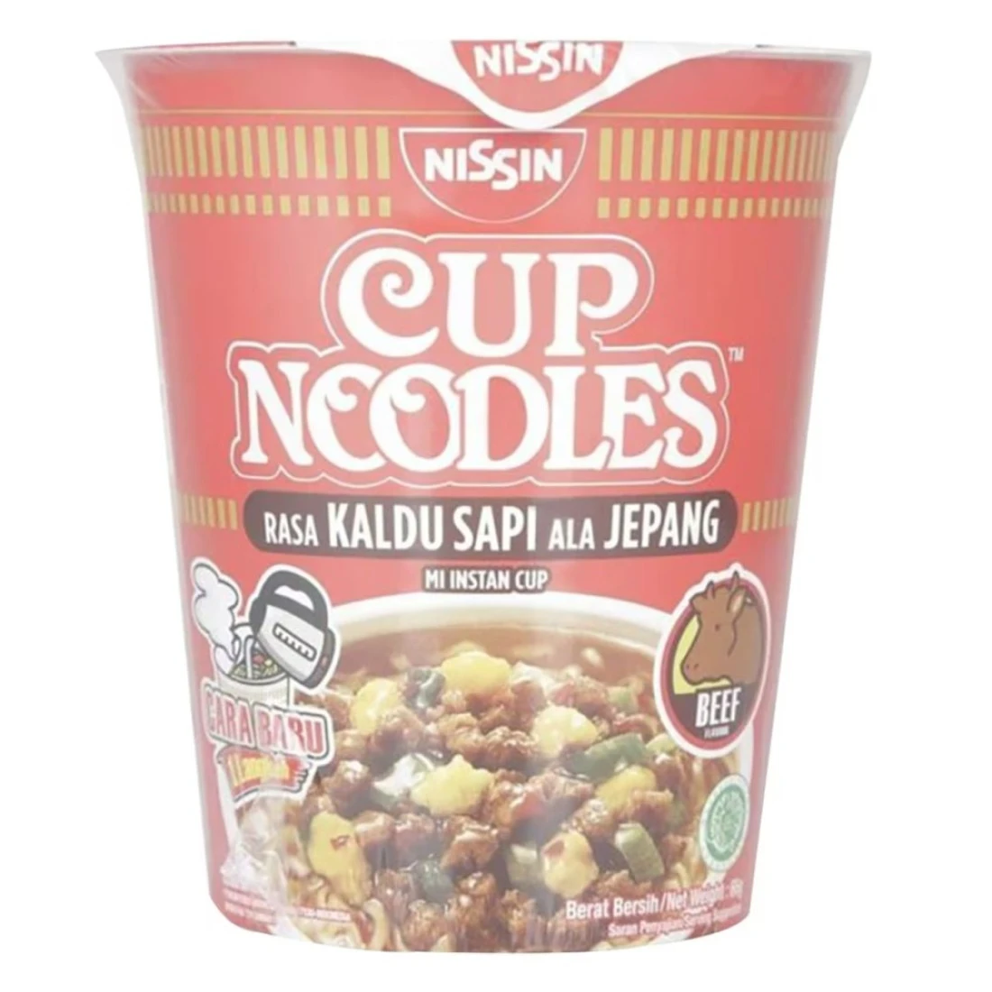 - نودلز نيسين بنكهة اللحم البقري اليابانية تأتي معبأة في وعاء أنيق مغلف بالكامل بالبلاستيك li>