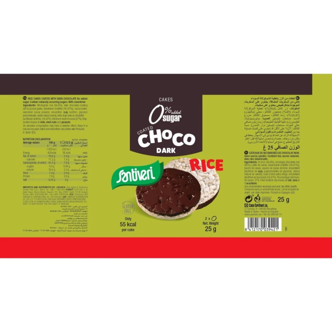 سانتيفيري كعكات أرز مغطاة بالشوكولاتة الداكنة، 25 غرام