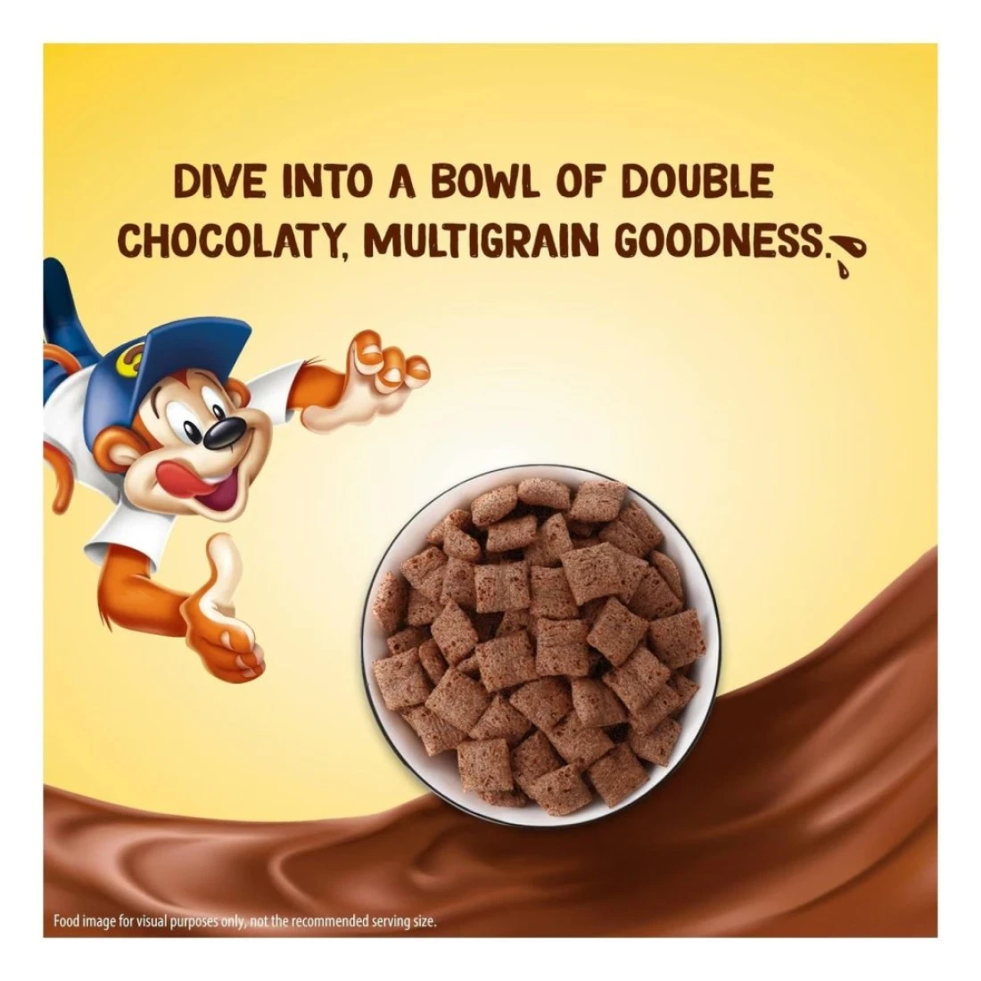 ingredients : قطع حبوب قمح محشوة بالكاكاو ومحشوة بكريمة الكاكاو. المكونات: دقيق قمح، دقيق ذرة، سكر، مسحوق كاكاو، ملح، عامل تثبيت (كربونات الكالسيوم E170)، مستحلب من أصل نباتي (أحادي وثنائي جليسريد الأحماض الدهنية E471)، نكهة طبيعية مطابقة (فانيليا)، حشوة كريمة الكاكاو [سكر، زيت نباتي غير مهدرج (نخيل، دوار الشمس)، مسحوق حليب خالي الدسم (حليب بقري)، مسحوق كاكاو، مستحلبات من أصل نباتي (ليسيثين الصويا E322، E476)، نكهة طبيعية مطابقة (شوكولاتة).