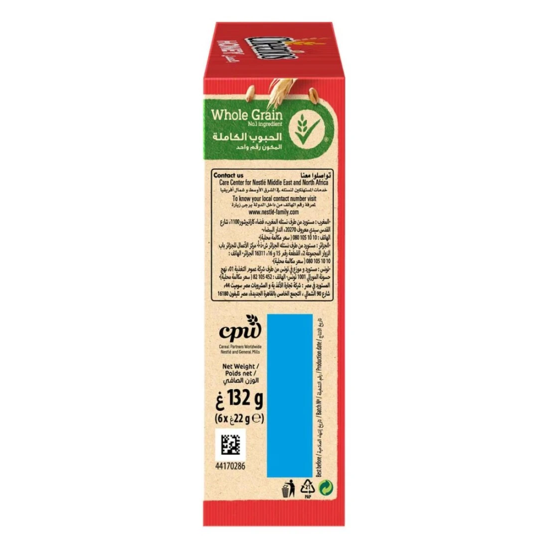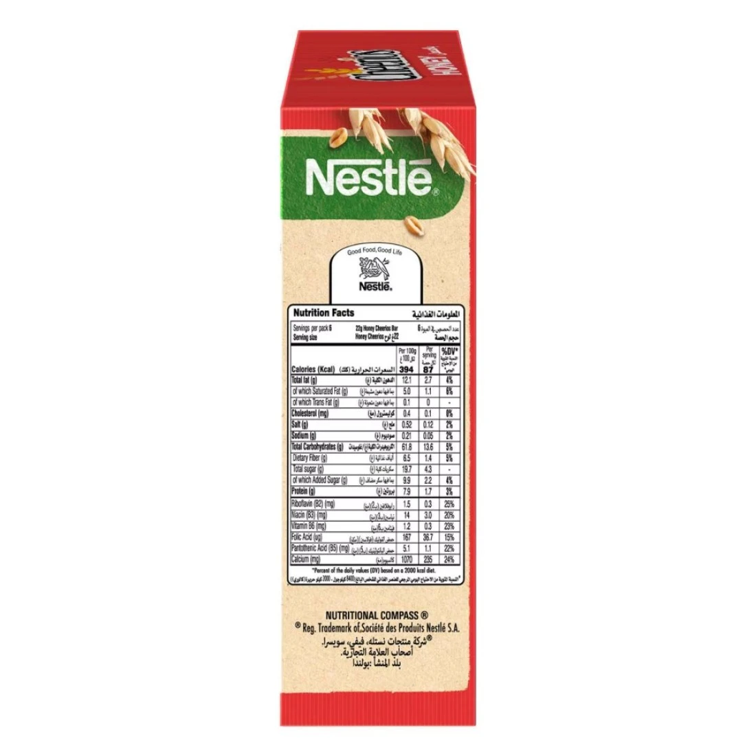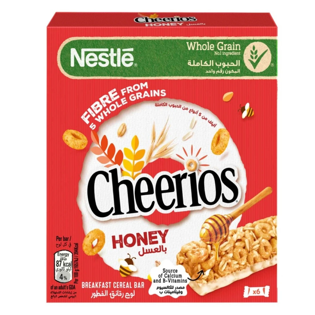 ألواح حبوب الإفطار نستله تشيريوس بالعسل، عبوة من 6 قطع، 22 غرامًا، لذيذة ومقرمشة بنكهة العسل، تُعد خيارًا رائعًا للإفطار أو الوجبات الخفيفة. تحتوي على حبوب كاملة مع فوائد الشوفان وتشيريوس، بالإضافة إلى مذاق العسل الحلو. مثالية لمن يكثرون من الحركة، فهي بداية صحية ولذيذة ليومهم.