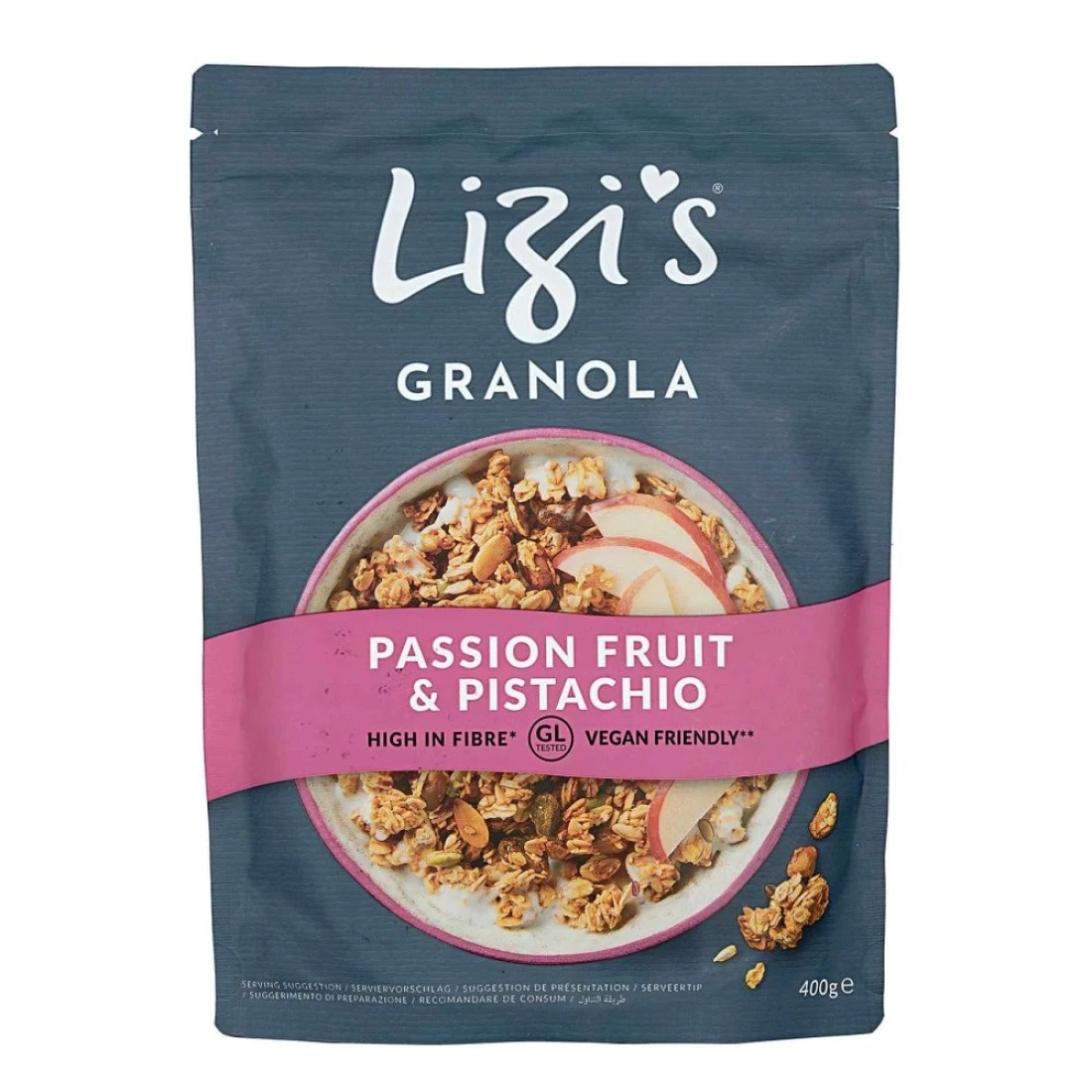 ليزيس حبوب افطار غرانولا كاملة الحبوب بنكهة الباشن فروت والفستق، 400 غرام
