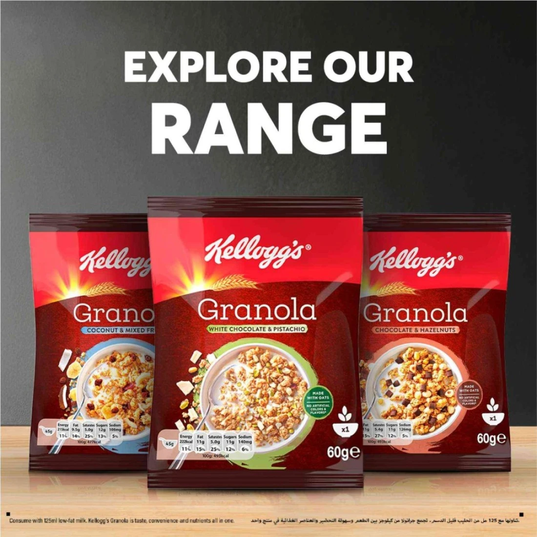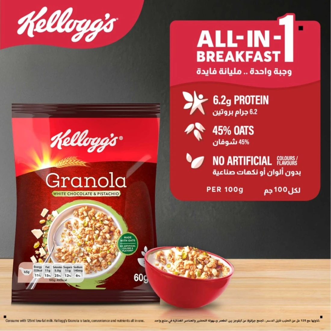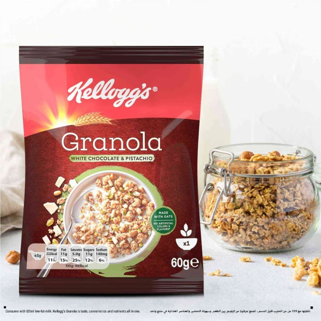 كيلوغز غرانولا الشوكولاتة البيضاء بالفستق، 60 غرام