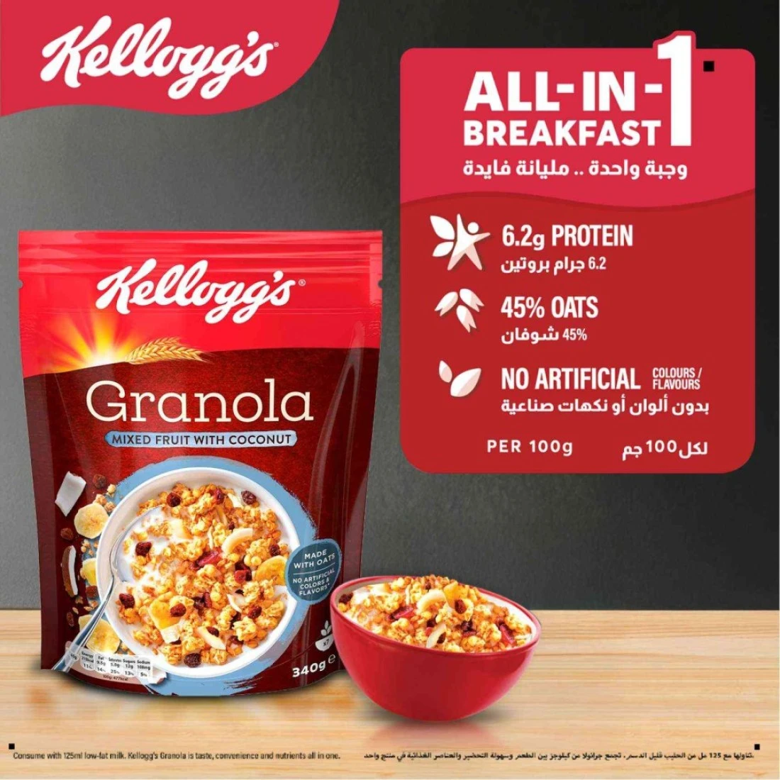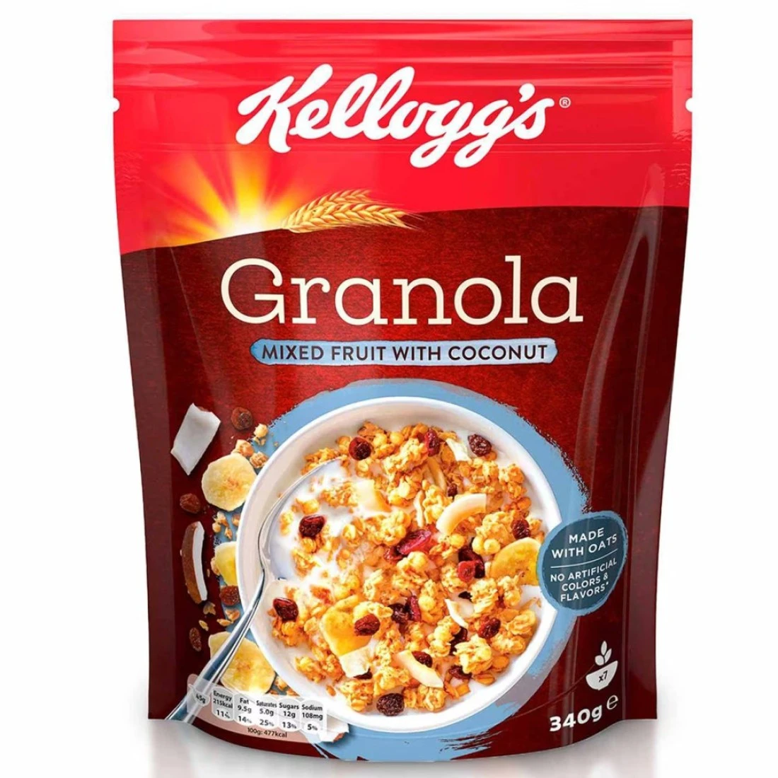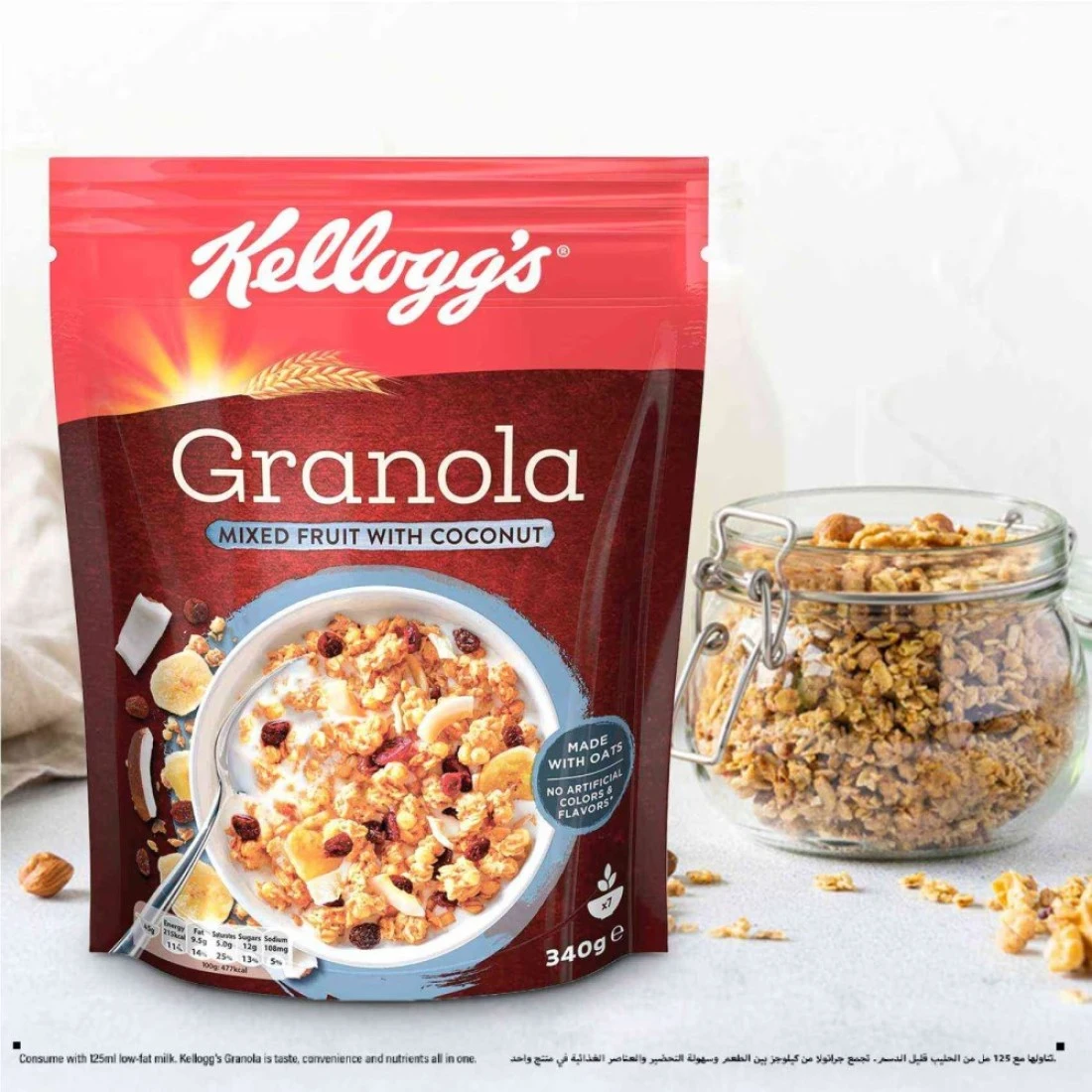 كيلوغز حبوب افطار غرانولا بالفواكه المشكلة مع جوز الهند، 340 غرام