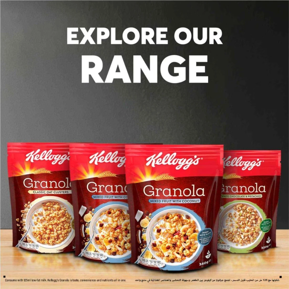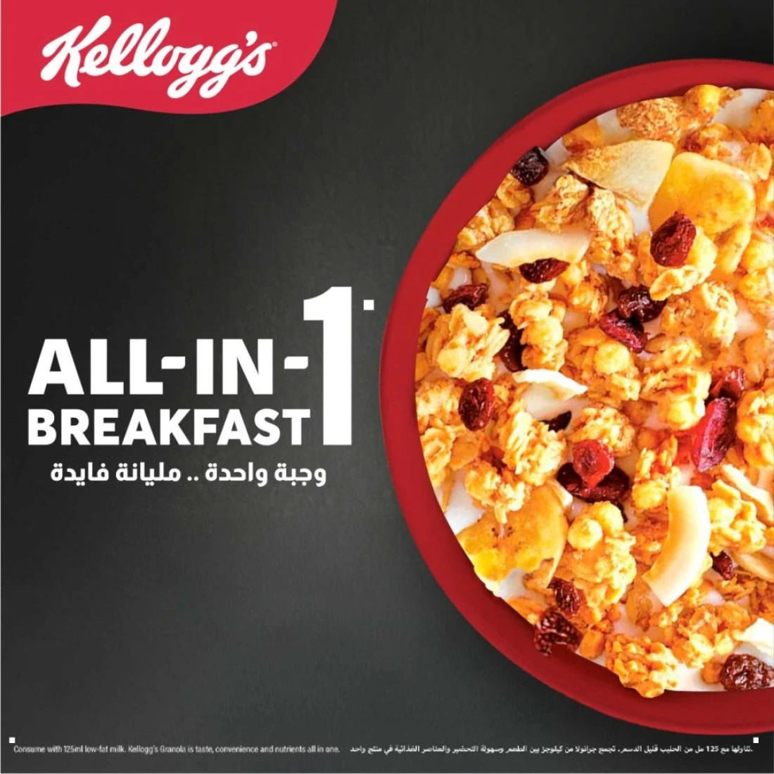 كيلوغز غرانولا كلاسيكية بالشوفان خيار فطور لذيذ ومغذي. مصنوع من مزيج من حبوب الشوفان الكاملة والفواكه المجففة وجوز الهند، توفر هذا الغرانولا قوامًا مقرمشًا ونكهة فاكهية غنية. إنه مصدر رائع للألياف وخالي من الألوان والنكهات الاصطناعية. استمتع بها مع الحليب أو الزبادي أو كإضافة لعصيرك المفضل.