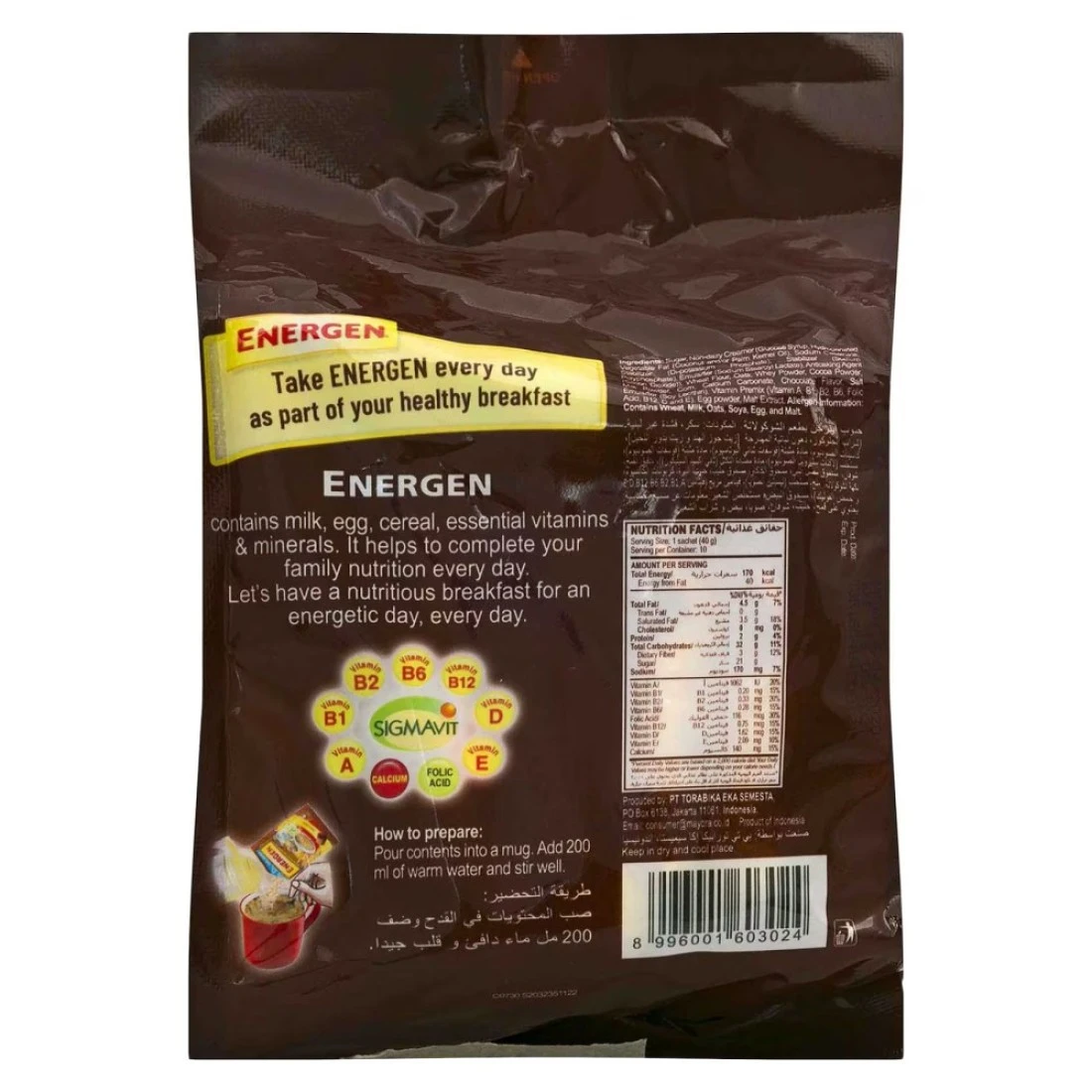 إنرجين حبوب بنكهة الشوكولاته بوزن 30 غرام، حزمة من 10. إنّ حبوب إنرجين بنكهة الشوكولاته، بوزن 30 غرام للعبوة، تُعد وجبة خفيفة لذيذة وغنية بالعناصر الغذائية لجميع الأعمار. صُنعت بمكونات صحية تتضمن حبوب القمح والشوفان الكامل والكاكاو، وهي خالية من المواد الحافظة والنكهات والألوان الإصطناعية. كل عبوة تحتوي على 30 غرام من حبوب الشوكولاته اللذيذة، وهناك عشر عبوات في كل صندوق، مما يجعلها مثالية للمشاركة مع العائلة والأصدقاء. إستمتع بوجبة خفيفة صحية ومتوازنة في الإفطار أو الغداء أو العشاء.