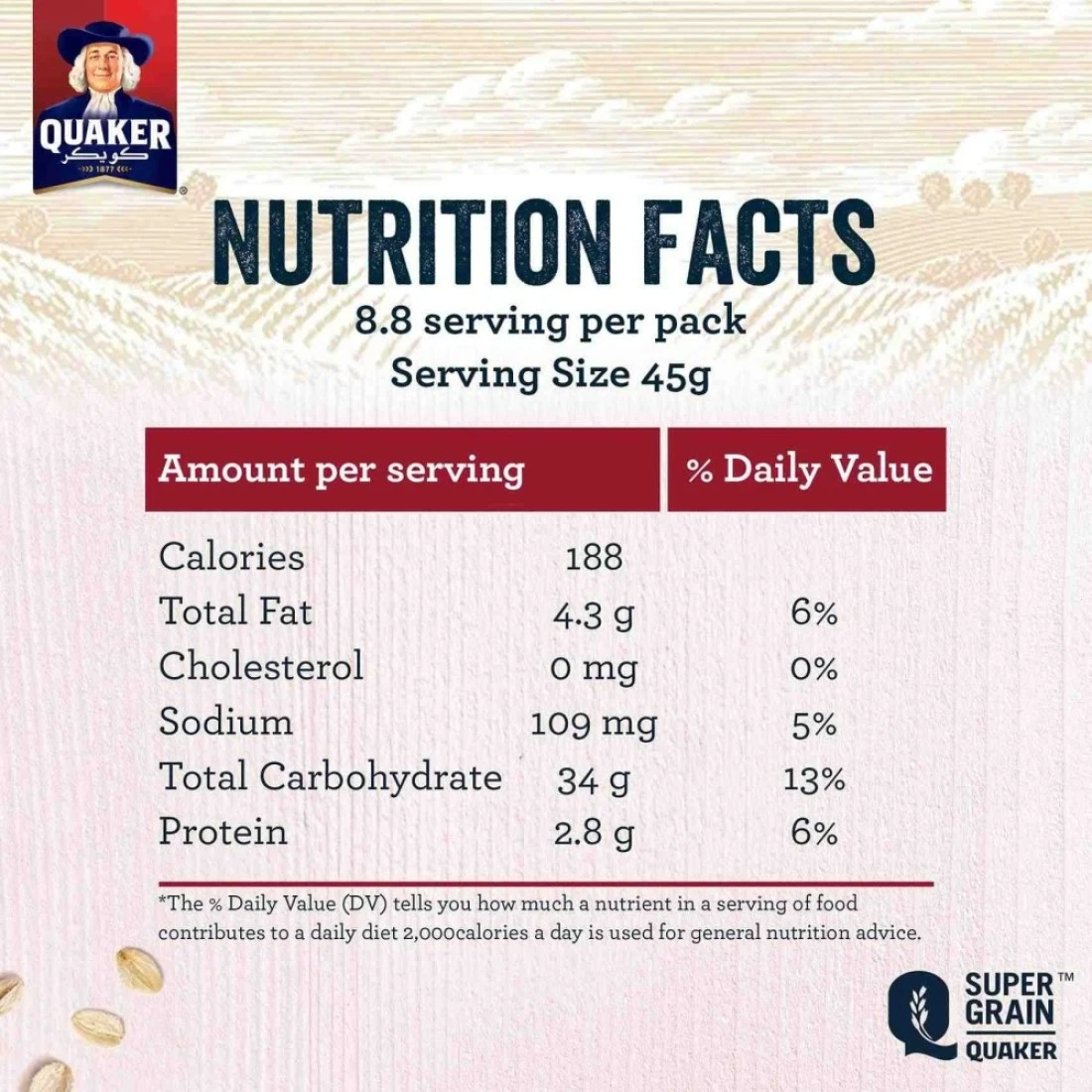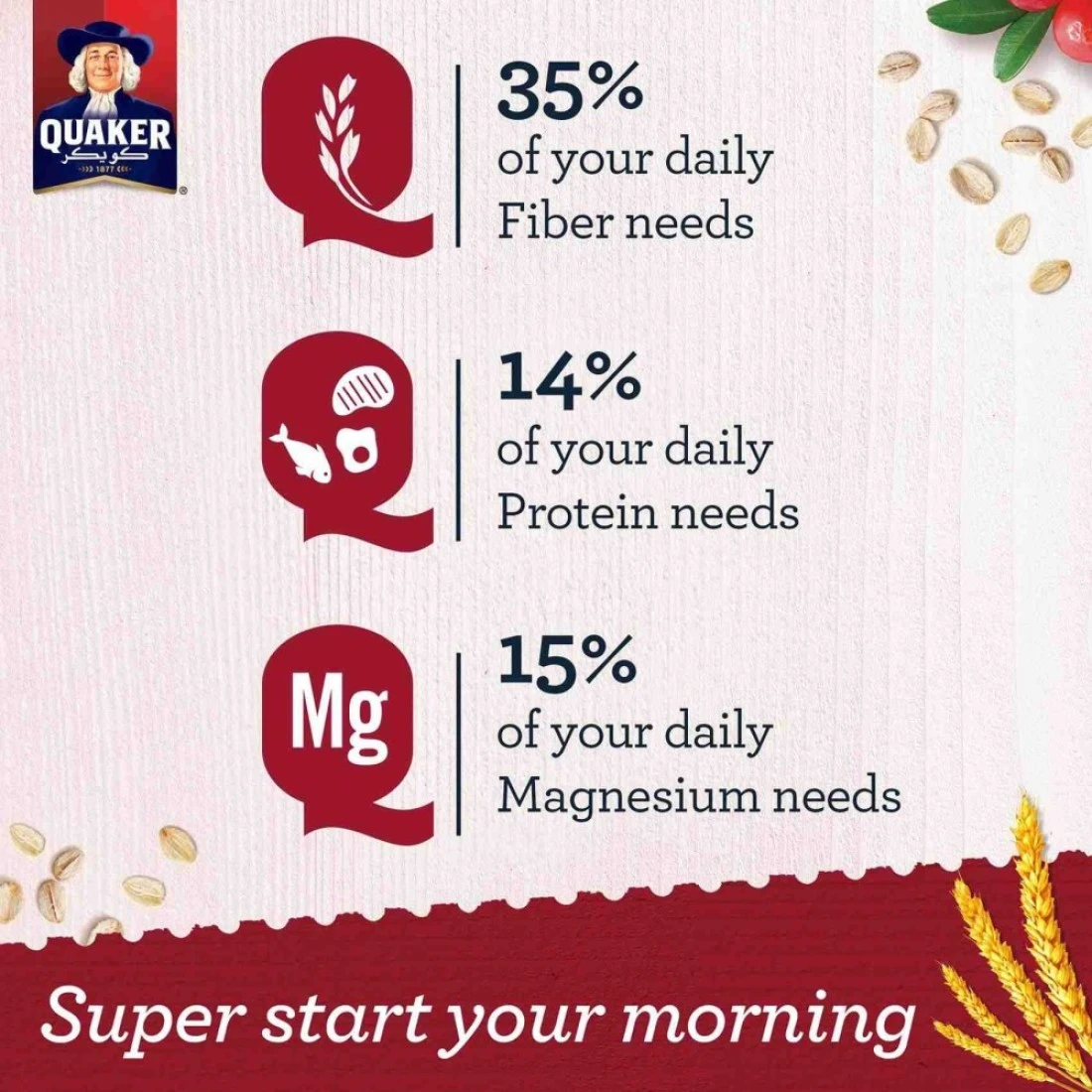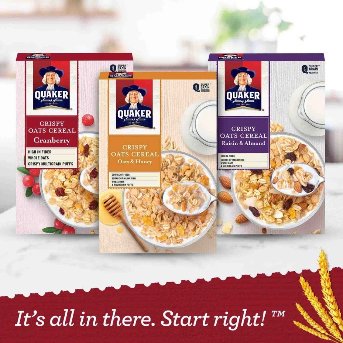 استمتع بوجبة شوفان لذيذة مع حبوب الشوفان المقرمشة الجديدة من كويكر، مع شوفان كويكر المحمص الكامل، وفطائر الحبوب المتعددة المقرمشة، وقطع الزبيب واللوز اللذيذة، لإضفاء التوازن المثالي للقرمشة. أطلق العنان لقوة الشوفان الخارقة وابدأ صباحك بوجبة إفطار رائعة من الشوفان، مليئة بالشوفان الكامل والألياف الطبيعية، ومليئة بالنكهة. حبوب الشوفان المقرمشة من كويكر هي طريقة لذيذة ومريحة لبدء يومك بشكل صحيح. مع حبوب الشوفان المقرمشة من كويكر، كل ملعقة منها مليئة بفوائد "الحبوب الفائقة". أضف حليبًا قليل الدسم أو ضعه فوق الزبادي قليل الدسم، أو استمتع به كوجبة خفيفة مقرمشة لذيذة أثناء التنقل! وجبة إفطار مع حبوب الشوفان المقرمشة من كويكر، الشوفان مثالي تمامًا.