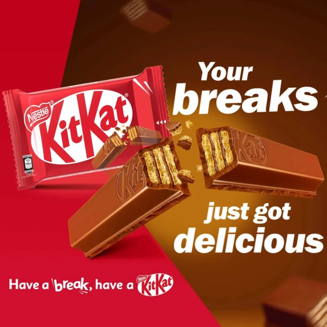 نستله كيت كات 4 أصابع مزيج مثالي من الشوكولاطة اللذيذة والويفر الخفيف، مع تجربة مقرمشة وكريمية للغاية تضمن لك ابتسامة على وجهك خلال استراحتك. مع نستله كيت كات 4 أصابع، لا يمكنك فقط الاستمتاع بمزيد من الاستراحات، بل يمكنك أيضًا مشاركتها مع أصدقائك وعائلتك. افتح العبوة، اكسر إصبعًا واستمتع بهذه الحلوى الطازجة واللذيذة. استمتع باستراحة مع كيت كات.