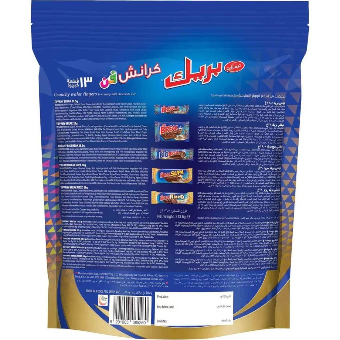 لوح تيفاني بريك كرانش فن ويفر بمزيج الشوكولاته، 313.5 غرام، وجبة خفيفة مقرمشة لذيذة تُرضي حتى أشد عشاق الحلويات. هذه الحلوى اللذيذة مصنوعة من رقائق ويفر مقرمشة ممزوجة بقطع شوكولاته فاخرة وطبقة كريمية. إنها الوجبة الخفيفة المثالية لعشاق الحلويات، هذا اللوح الممتع سيُسعد بالتأكيد أي عاشق للشوكولاته!