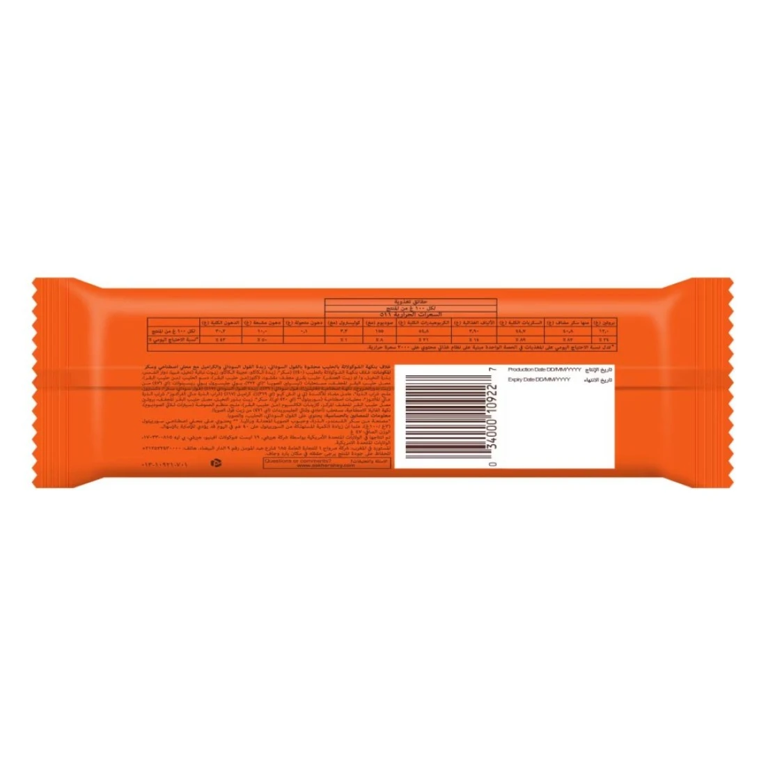 ingredients : شوكولاته الحليب (سكر، زبدة الكاكاو، شوكولاته، حليب منزوع الدسم، لاكتوز، دهن الحليب، ليسيثين، بولي جليسيرول بوليريسينوليات)