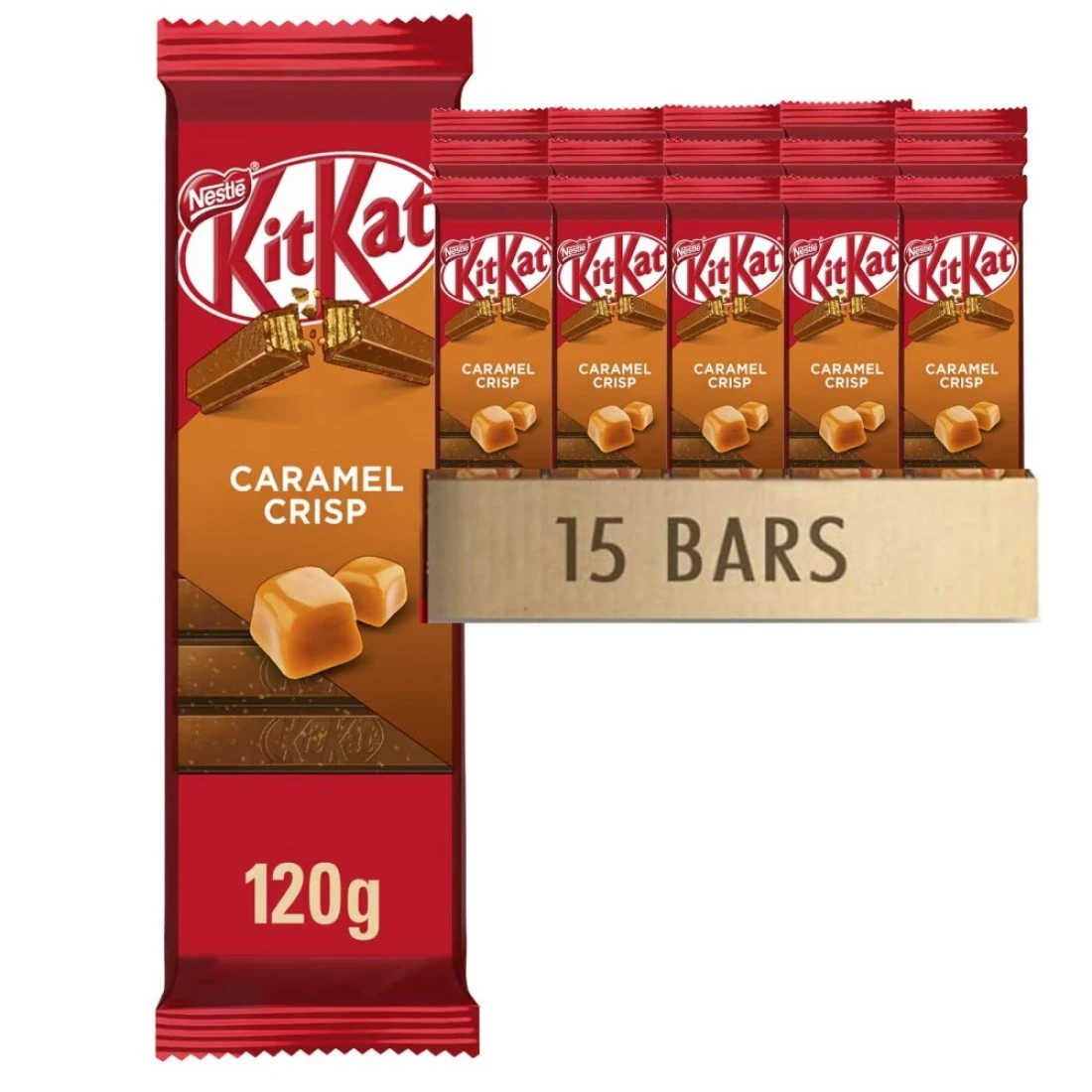 نستله كيت كات شوكولاطة كراميل المقرمش، 120 غرام، حزمة من 15 قطعة