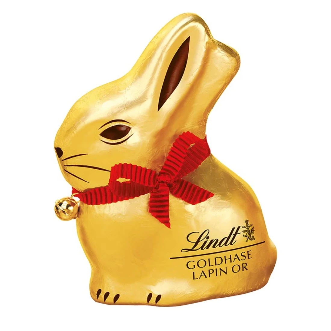 - ليندت غولد باني الأرنب الشهير تم تصميمه بواسطة ماستر الشوكولاته يرتدي بشكل جميل الذهب مع الشريط والجرس الذهبي الذي يدق!