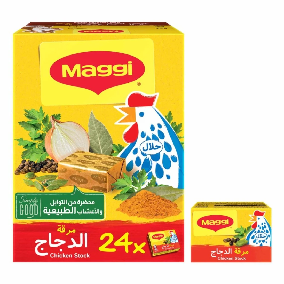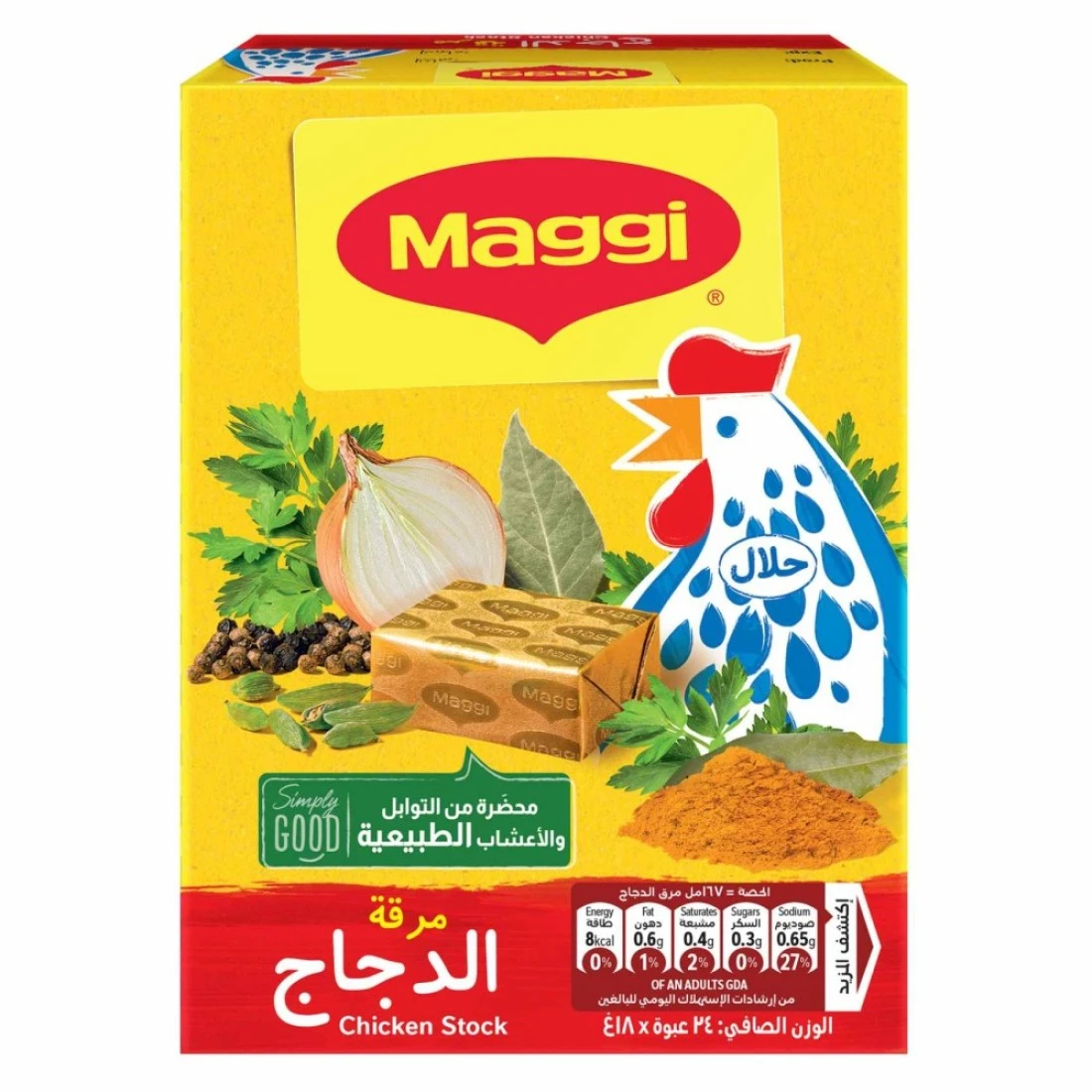 - تغليف مريح: تحتوي كل عبوة على 24 مكعبًا فرديًا من مرق الدجاج بوزن 18 غرامًا، مثالية للتخزين والاستخدام السهل