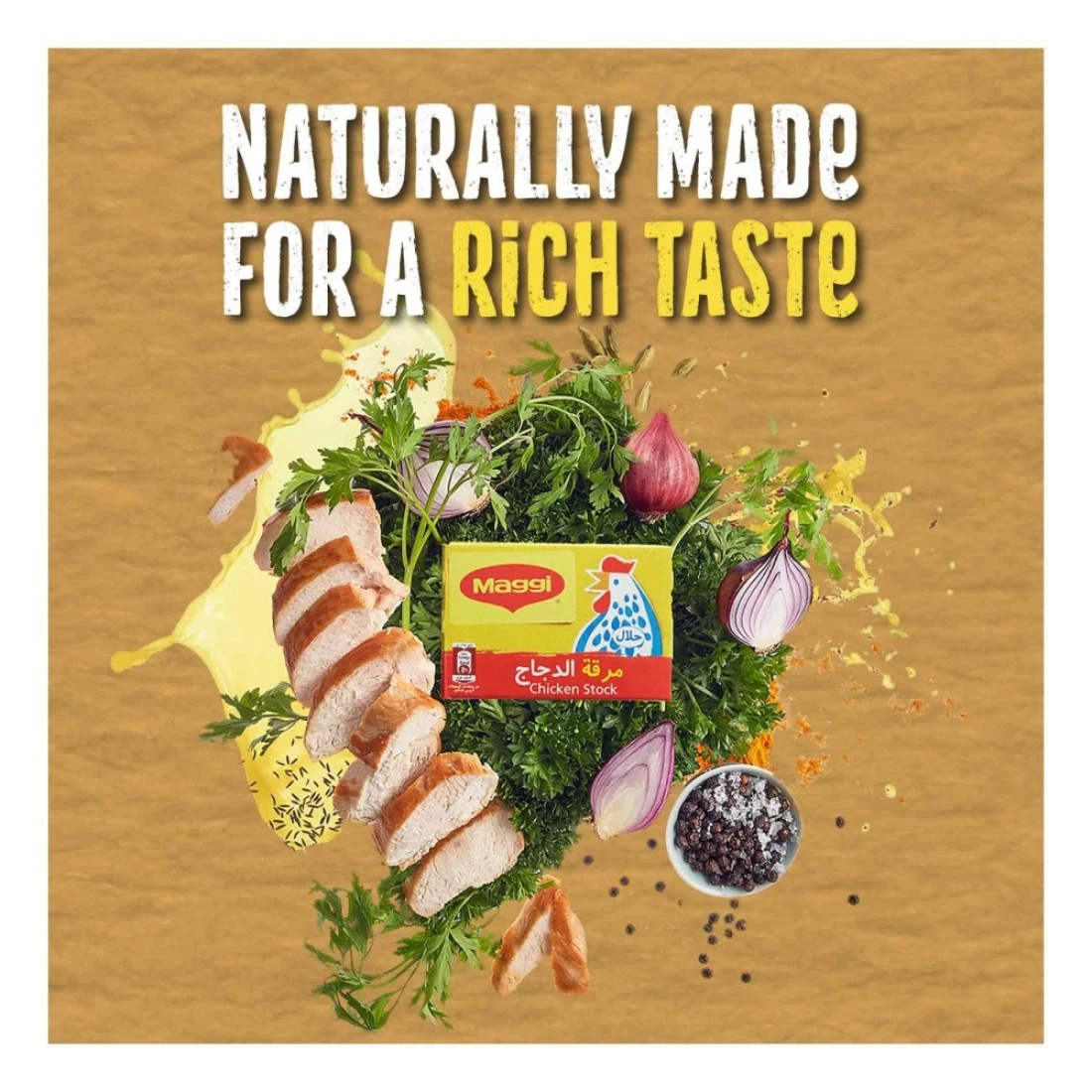 - نكهة غنية: مصنوعة بمزيج من المكونات عالية الجودة لتقديم طعم دجاج قوي، وتعزيز أطباقك دون عناء
