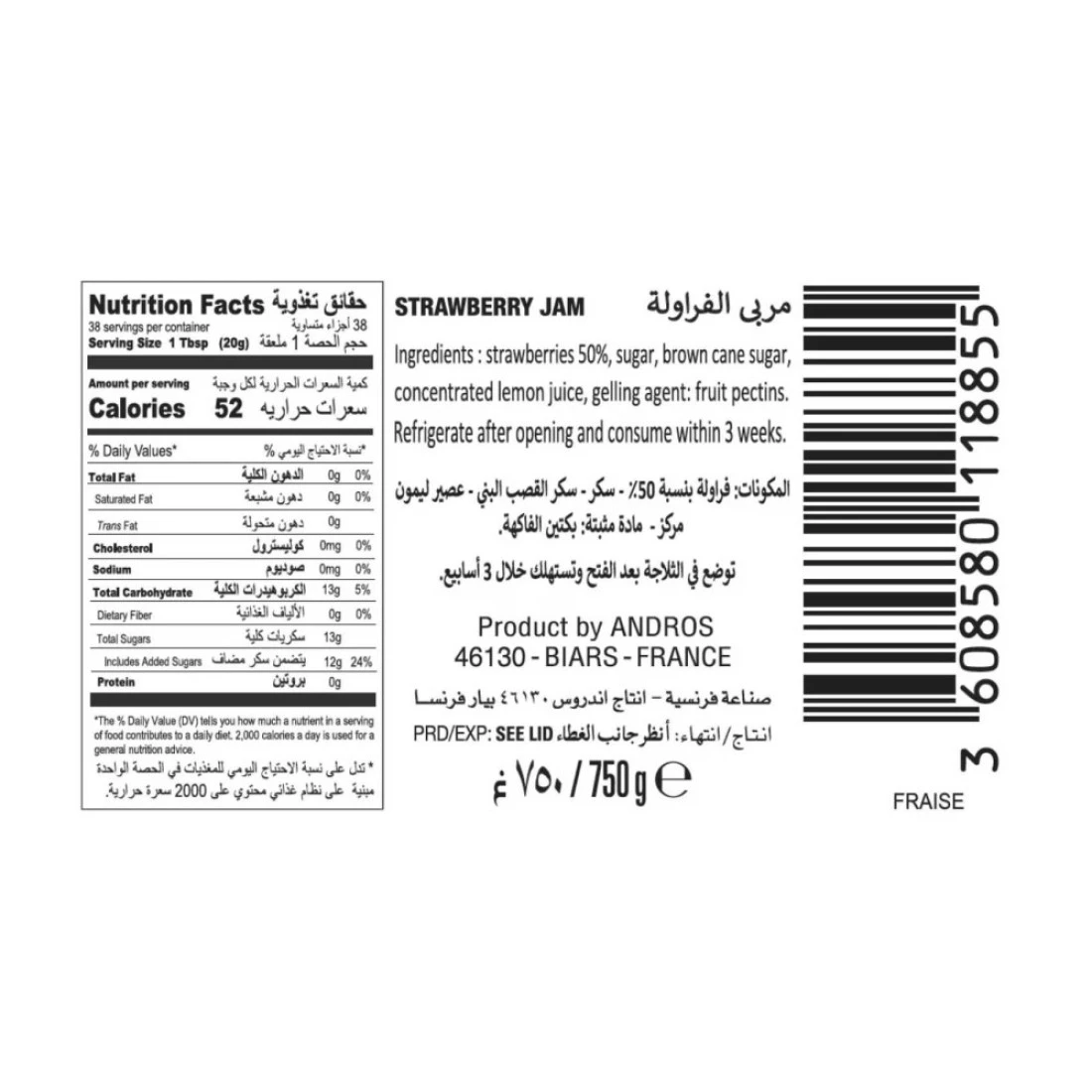 مربى الفراولة من بون مامان هو مربى لذيذ وكلاسيكي مصنوع من أجود أنواع الفراولة. يتمتع بطعم غني وحلو يتناسب تمامًا مع الخبز المحمص أو الكعك أو كحشو للمعجنات. إستمتع بطعم لذيذ لمربى بون مامان الفراولة. صُنع هذا المربى بنسبة 100٪ من مكونات طبيعية وبدون إضافة أي مواد كيميائية صناعية، حيث يلتقط جوهر الفراولة الطازجة في كل ملعقة. يمكن دهنه على وجبات الإفطار المفضلة لديك أو إستخدامه كطبقة على الحلويات. يعتبر مربى بون مامان الفراولة من أساسيات المخزن التي سترفع من مستوى روتين الإفطار الخاص بك. بفضل قوامه الناعم ونكهته الفراولية الزاهية، يعتبر هذا المربى خيارًا يُرضي الجميع. صُنع بمكونات بسيطة وبدون مواد حافظة، إنه وجية خالية من الشعور بالذنب ستستمتع بها العائلة بأكملها.