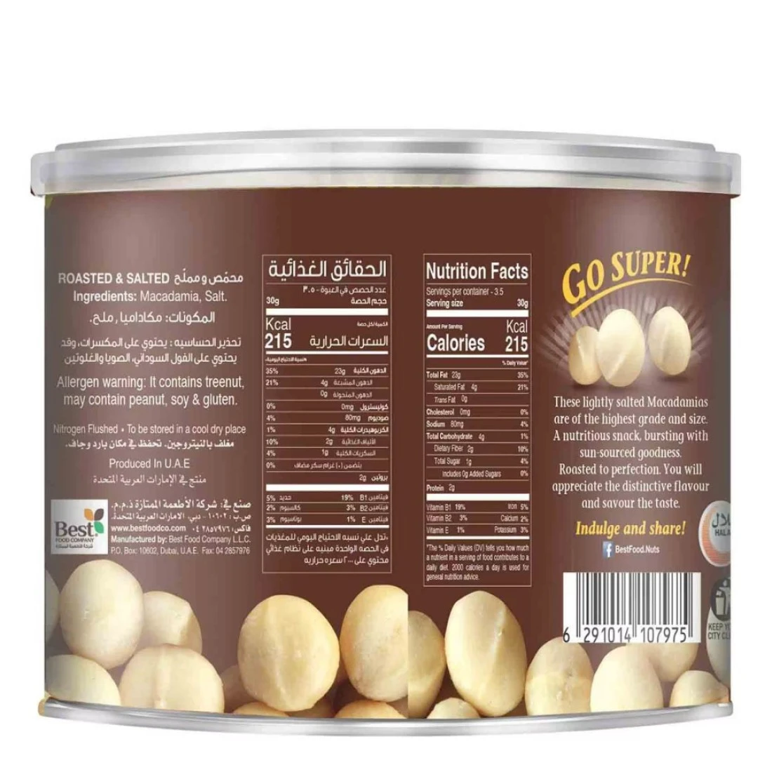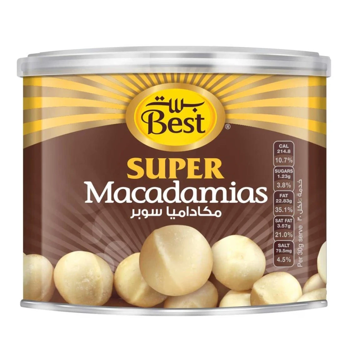 مكاديميا من بست سوبر هي وجبة خفيفة لذيذة ومغذية، مصنوعة من مكسرات مكاديميا عالية الجودة محمصة ومملحة. تُستخرج هذه المكاديميا من أجود المزارع، وتشتهر بنكهتها الغنية بالزبدة وقوامها المقرمش. غنية بالعناصر الغذائية الأساسية، كالدهون الصحية والفيتامينات والمعادن، تُعد هذه المكاديميا وجبة خفيفة مثالية أثناء التنقل أو إضافة مميزة إلى وصفاتك المفضلة. تُسهّل عبوتها العملية الاستمتاع بهذه المكسرات اللذيذة في أي وقت وفي أي مكان. سواء كنت من محبي المكاديميا أو تبحث عن وجبة خفيفة صحية، فإن مكاديميا من بست سوبر خيار رائع.