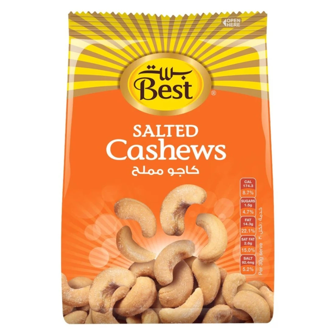 يُعدّ الكاجو المملح من بست خيارًا لذيذًا ومغذيًا لوجبة خفيفة في جميع المناسبات. يتم اختيار هذا الكاجو المملح عالي الجودة بعناية فائقة، ويُحمص بإتقان ليُبرز نكهته الطبيعية وقرمشته. كل حبة كاجو مغطاة بكمية وفيرة من الملح، مما يُضفي لمسةً لذيذةً على كل قضمة. معبأة في كيس عملي، تُعدّ هذه الوجبة الخفيفة مثالية لمشاركتها مع الأصدقاء والعائلة أو للاستمتاع بها أثناء التنقل. سواء كنت تبحث عن وجبة خفيفة صحية أو إضافة لذيذة إلى طبخك وخبزك، فإن الكاجو المملح من بست سيُرضي ذوقك بالتأكيد.