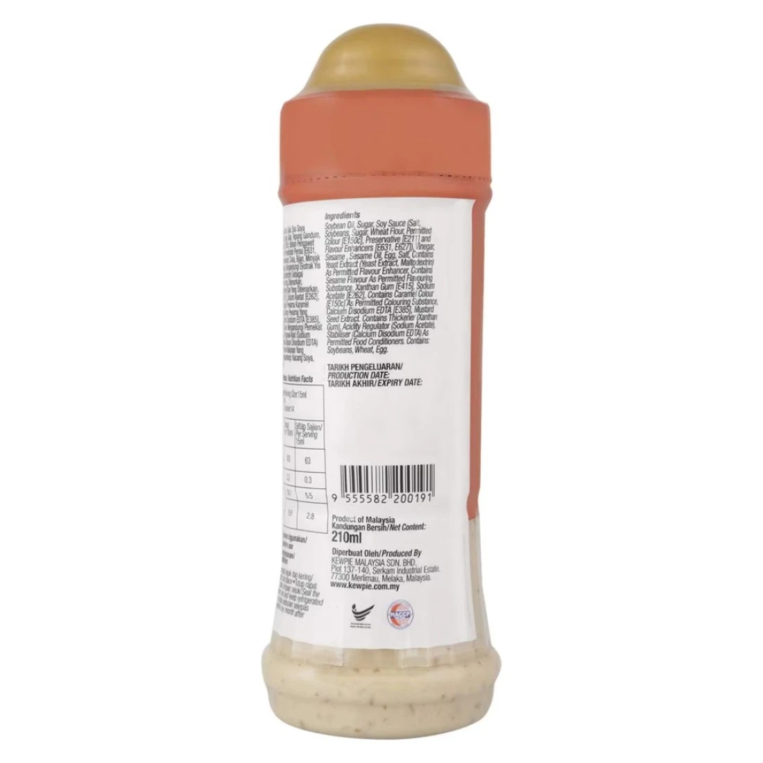 ingredients : زيت فول الصويا ، سكر ، صلصة الصويا (ملح ، فول الصويا ، سكر ، دقيق القمح ، لون مسموح به [e150c] معززات النكهة و مواد حافظة [e631 ، E627]) ، خل، سمسم، زيت السمسم ، ملح البيض ، يحتوي على خلاصة الخميرة (خلاصة الخميرة) ، مالتوديكسترين)