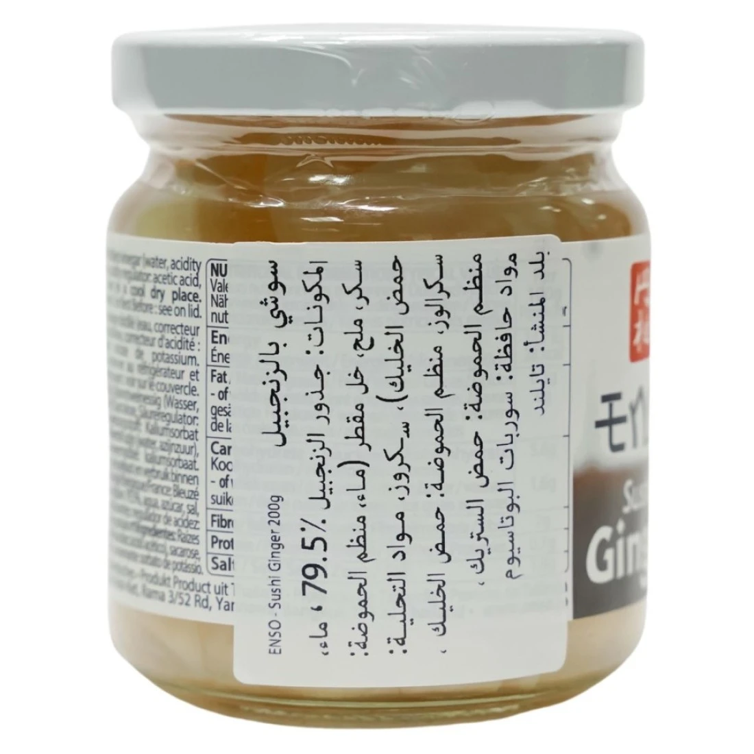 ingredients : جذور الزنجبيل 50%، ماء، ملح، مثبت حموضة: حمض الخليك، مثبت الحموضة: حمض ستريك، محفوظ: بنزوات الصوديوم، محفوظ: ميتابيسلفيت صوديوم، محلي: سكرينات الصوديوم، محلي: سكرالوز