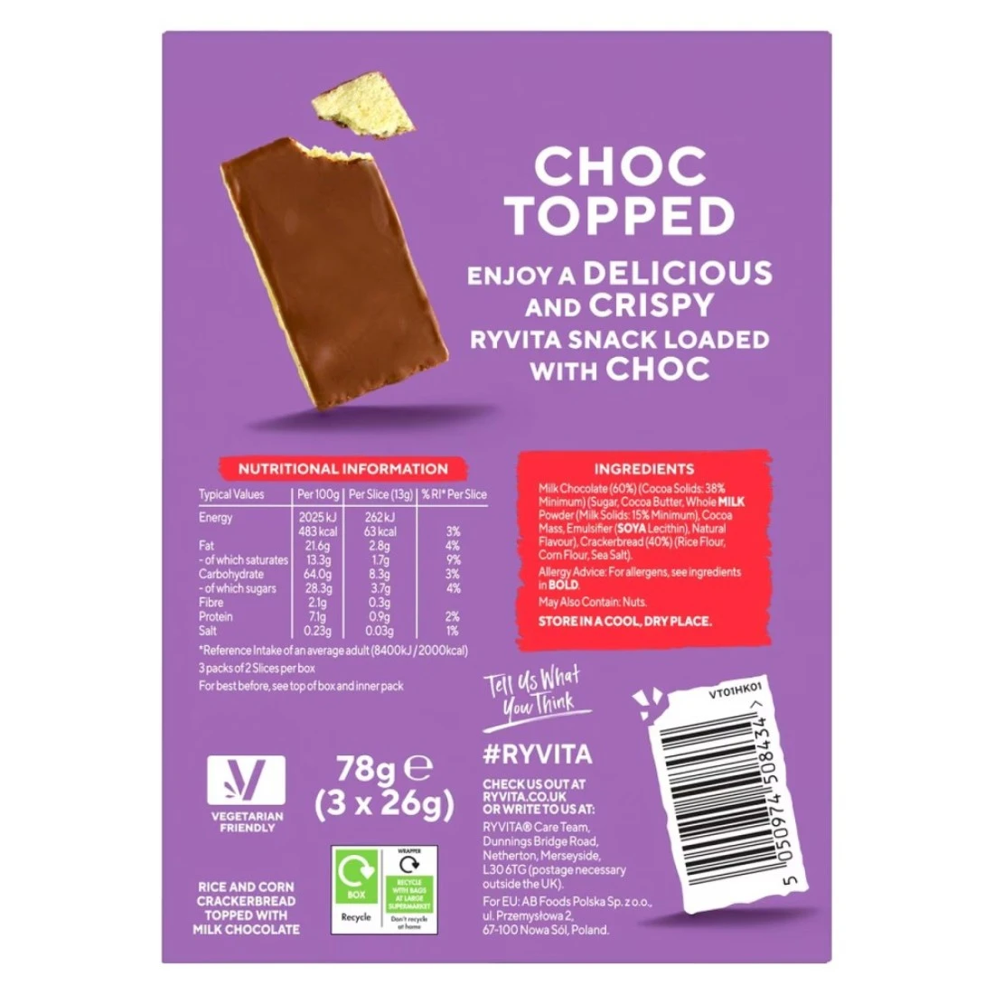 وجبات خفيفة مقرمشة من ريفيتا بنكهة الشوكولاته بالحليب هي وجبات خفيفة لذيذة ومقرمشة مصنوعة من حبوب الجاودار الكاملة والشوفان، ممزوجة بنكهة الشوكولاته بالحليب الحلوة. هذه الوجبات الخفيفة مثالية لإشباع رغبتك في تناول الحلويات مع الاستمتاع بوجبة صحية ومغذية. تحتوي كل عبوة على 78 غرامًا من هذه الوجبات الخفيفة المقرمشة، مما يجعلها خيارًا مناسبًا ولذيذًا لتناول الوجبات الخفيفة في أي وقت من اليوم.