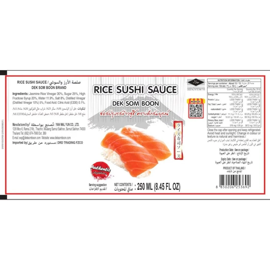 صلصة الصويا ديك سوم بون هالثي بوي شويو هي صلصة صويا عالية الجودة تم تصنيعها خصيصًا للأرز والسوشي والساشيمي. مصنوعة من مكونات طبيعية، تضيف صلصة الصويا هذه نكهة غنية ولذيذة لأطباقك المفضلة. زجاجة سعة 250 ملل مناسبة للاستخدام المنزلي ومثالية لتعزيز مذاق وجباتك.