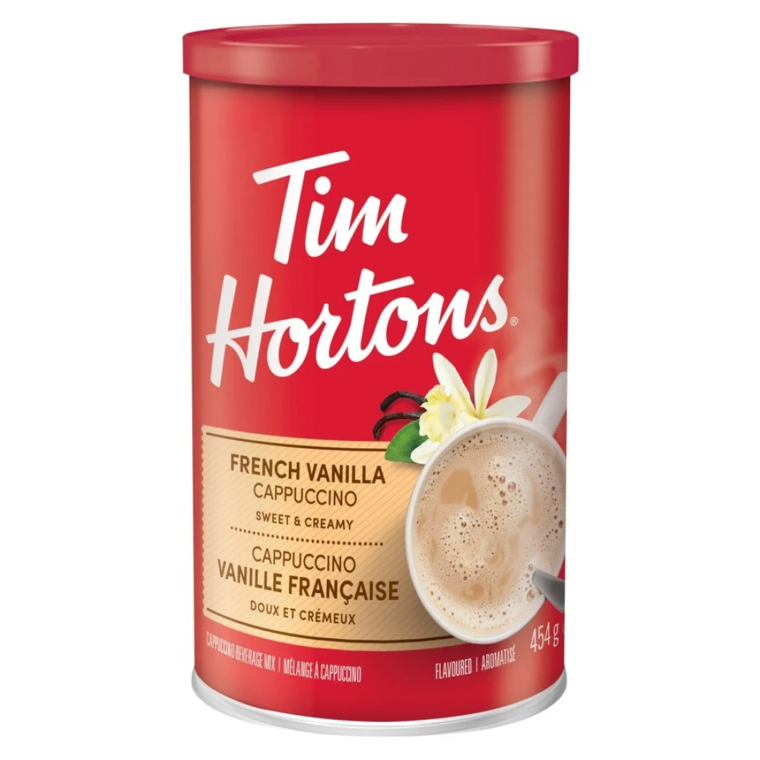 تيم هورتنز مزيج مشروب كابتشينو بالفانيليا الفرنسية الحلو والكريمي، 454 غرام