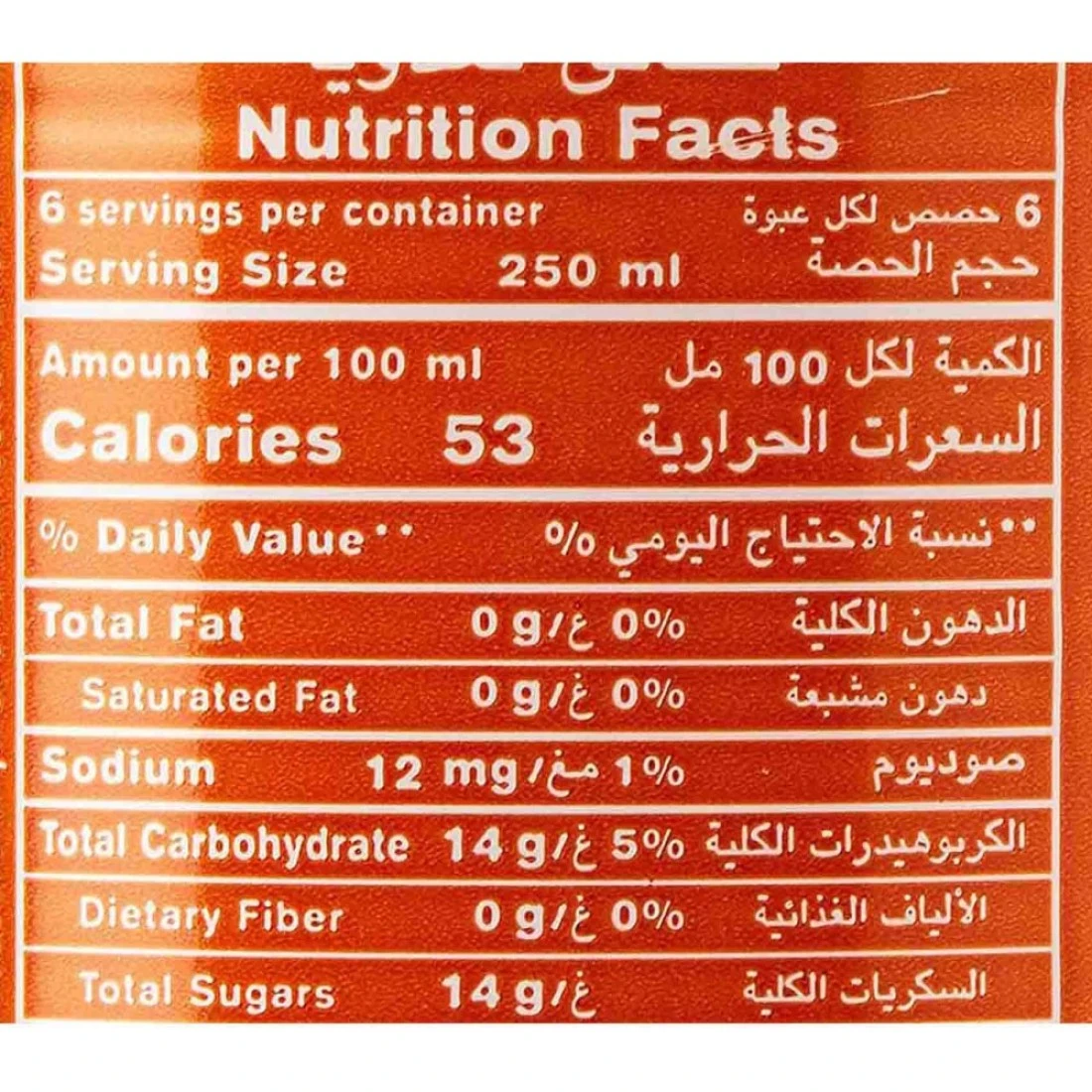 ingredients : مياه غازية، لون (كراميل)، حامض (حمض فوسفوريك)، كافايين، مستحلب (صمغ عربي)، نكهات كولا طبيعية.