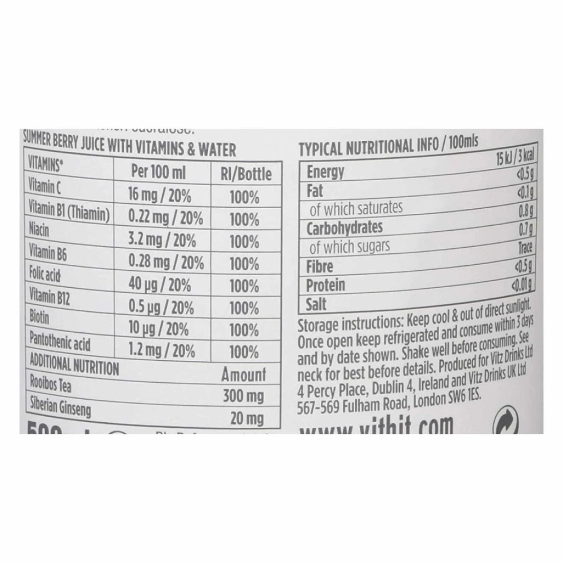 ingredients : ماء، عصير 7% (تفاح 4.9%، نبات البلسان 0.7%، ورد المسك 0.7%، فراولة 0.35%، عنب 0.07%، توت أزرق 0.07%، توت أسود 0.07%، توت العليق 0.07%، عنب الثعلب 0.07%)، مستخلص شاي الرويبوس، حمض الستريك. ، منقوع الجينسنغ السيبيري، نكهات، مركز الجزر، صمغ عربي مثبت، مضاد للأكسدة. حمض الأسكوربيك، السكرالوز، مزيج الفيتامينات (فيتامين ج، النياسين، حمض البانتوثينيك فيتامين ب6، فيتامين ب1، البيوتين، حمض الفوليك، فيتامين ب12).