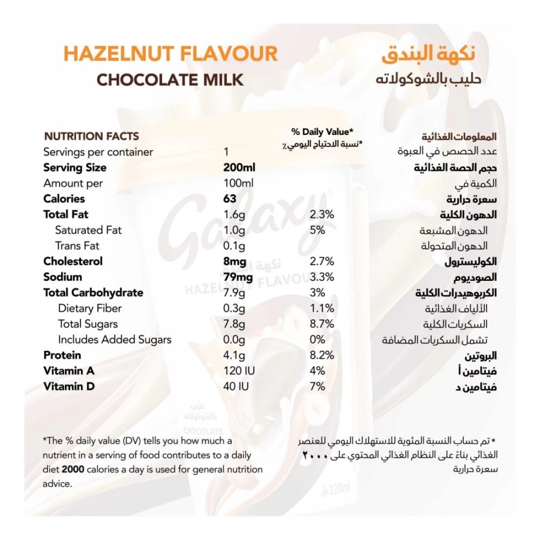 غالاكسي حليب بالشكولاتة بنكهة البندق 220 ملل