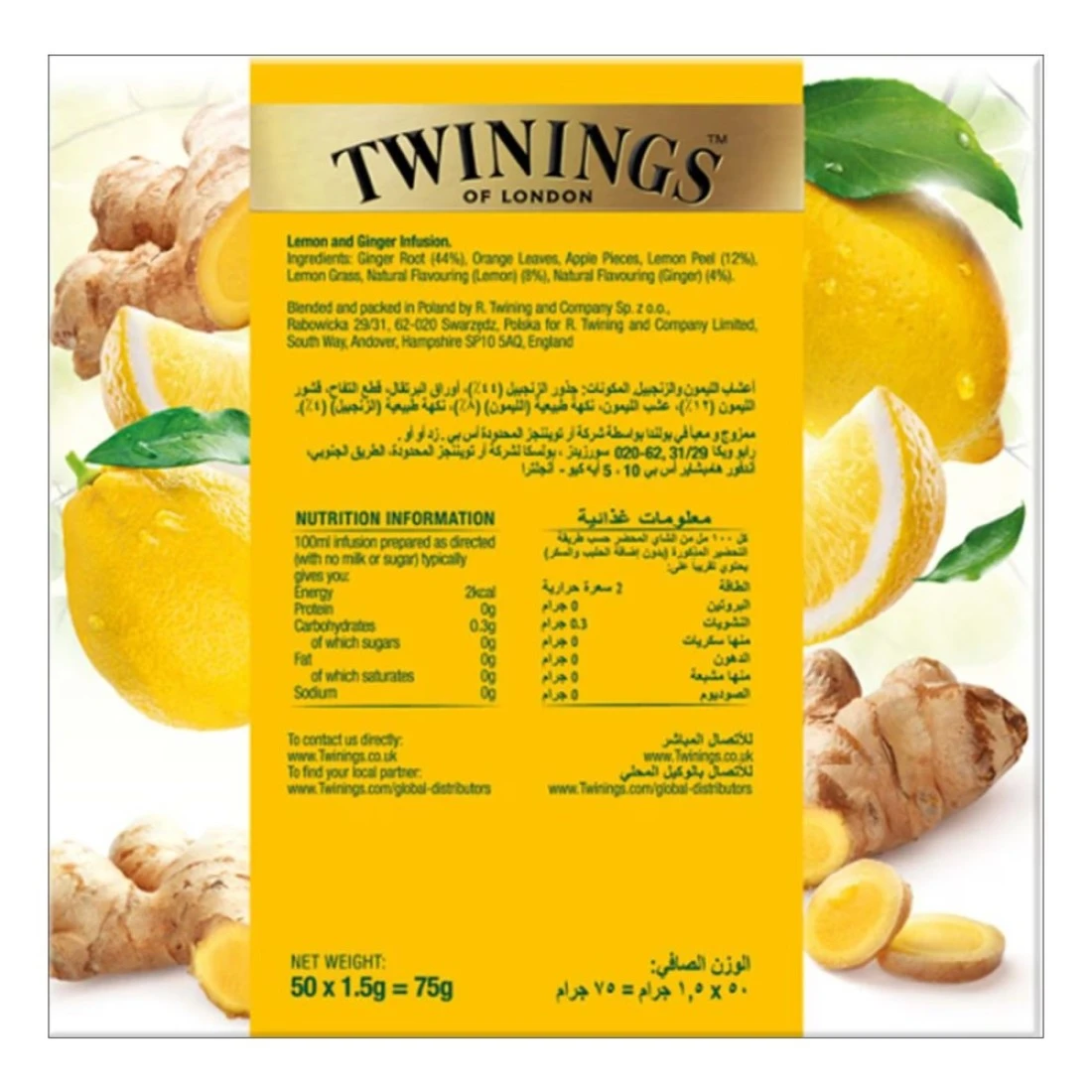 توينينغز إنفيوزو منقوع ليمون وزنجبيل 50 كيس