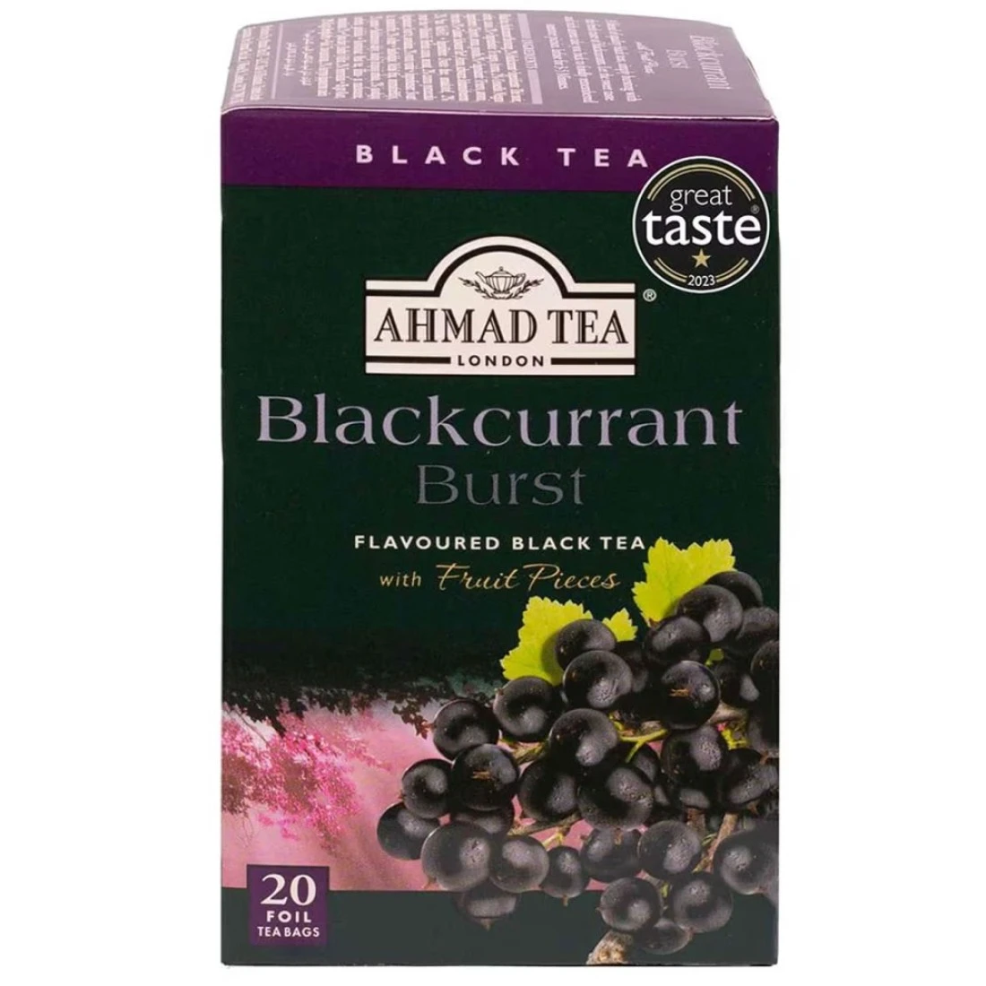 أحمد تي شاي أسود بنكهة الكشمش الأسود مع قطع الفاكهة، 20 كيس شاي