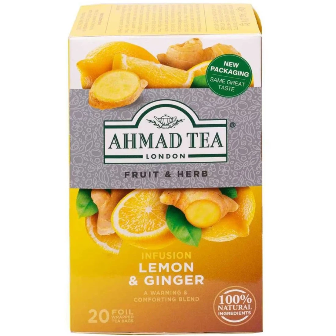 أحمد تي اكياس شاي بالفواكه والأعشاب بنكهة الليمون والزنجبيل، 20 كيس شاي