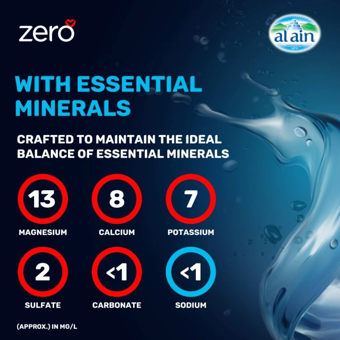 - Zero هو الماء الوحيد الذي يتمتع بتوازن الحموضة (pH)، وخالٍ من الصوديوم، ومعتمد من الجهات التنظيمية