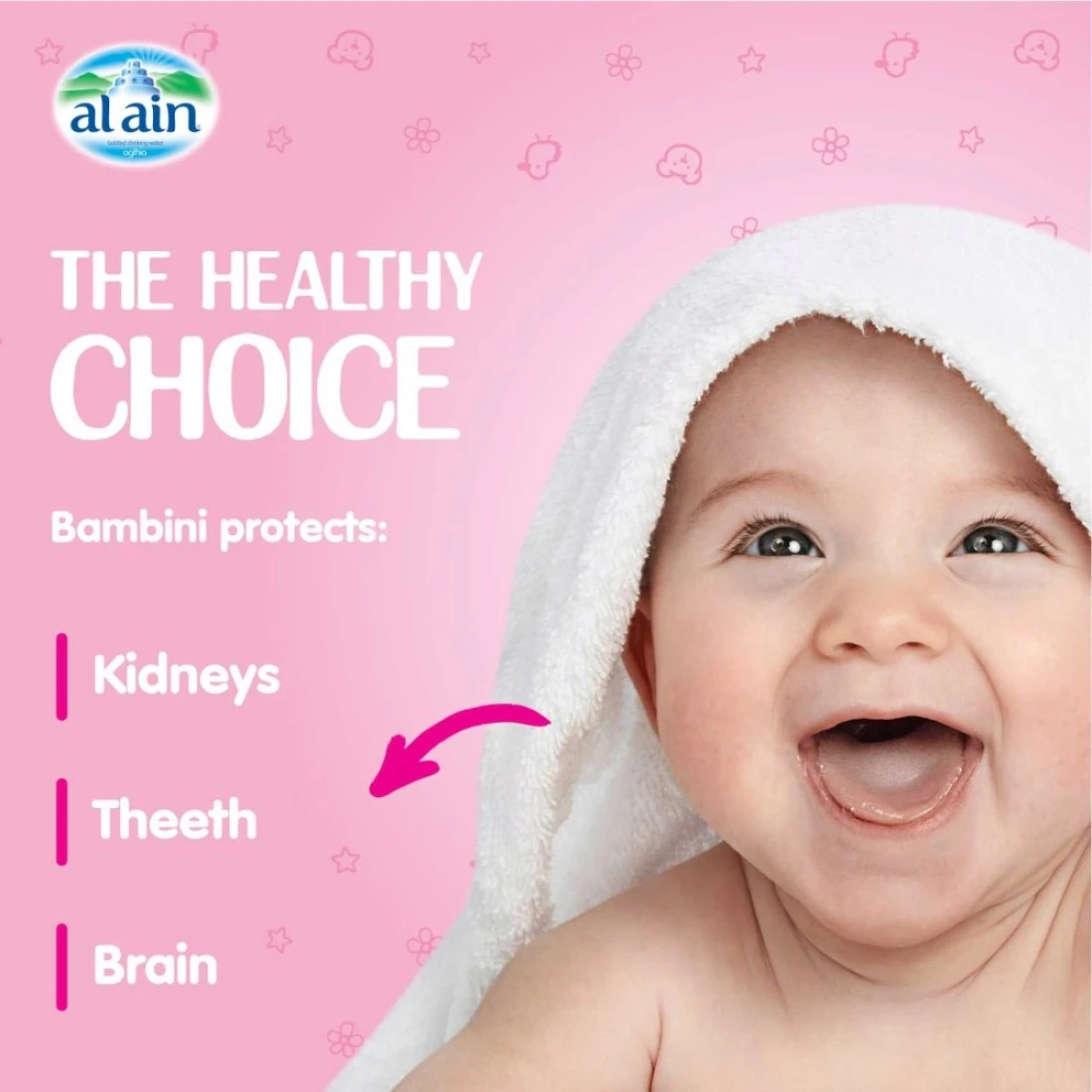 - زجاجات صديقة للبيئة: مصنوعة من مواد قابلة لإعادة التدوير، تدعم مياه الشرب المعبأة من العين بامبيني الاستدامة مع الحفاظ على ترطيب الأطفال