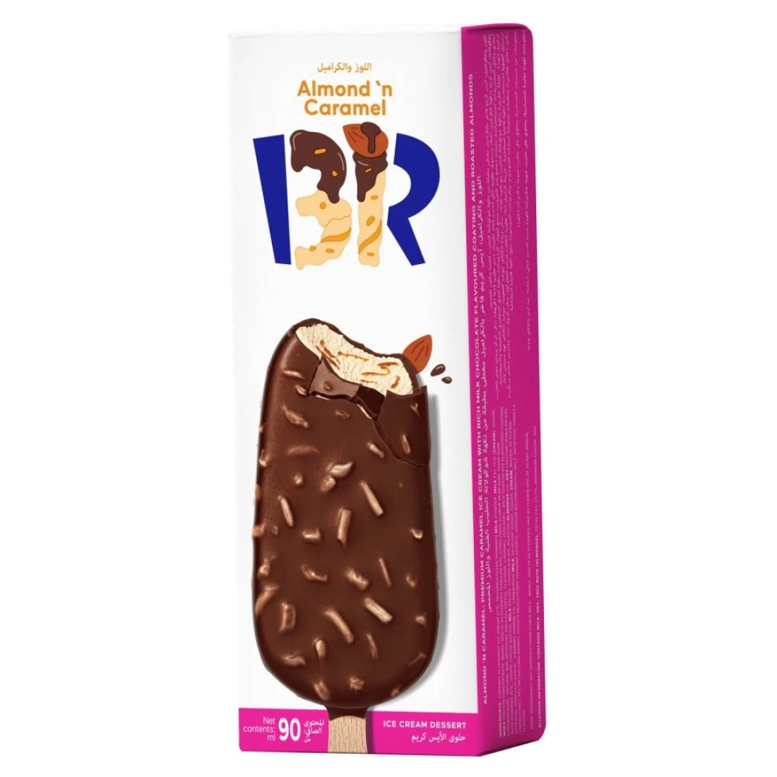 - Deliciously rich caramel ice cream covered in smooth milk chocolate with roasted almond pieces