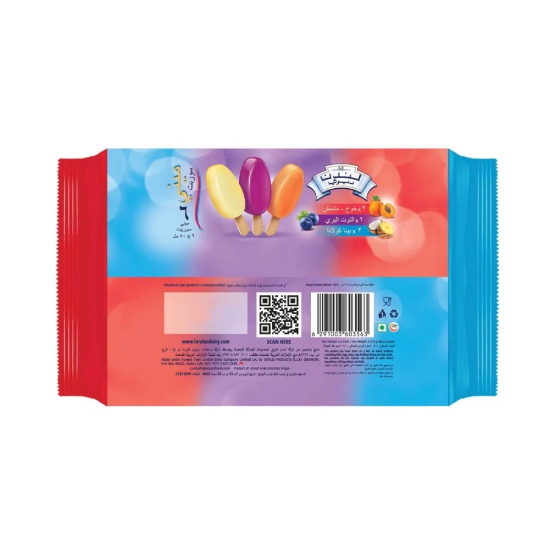 - استمتع بتشكيلة لذيذة من *لندن ديري ميني سوربيه*، في حزمة مكونة من 6 × 50 ملل لتقديم الحجم المثالي