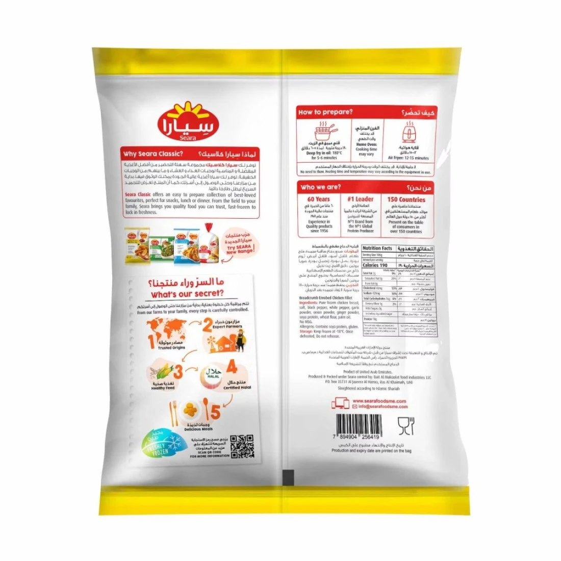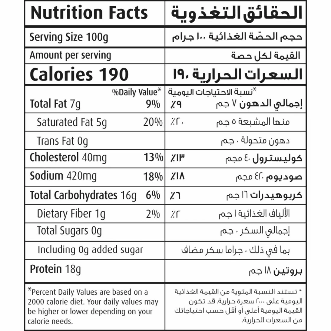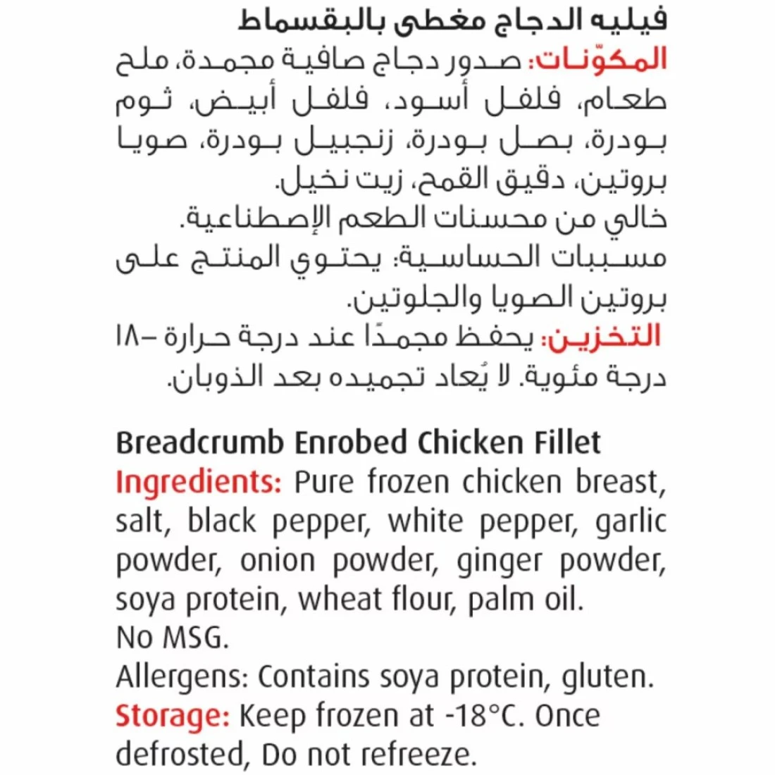 ingredients : لحم دجاج حلال، ماء، زيت نباتي، جلد دجاج حلال، دقيق القمح، نشاء، دقيق الأرز، ملح، بهارات طبيعية