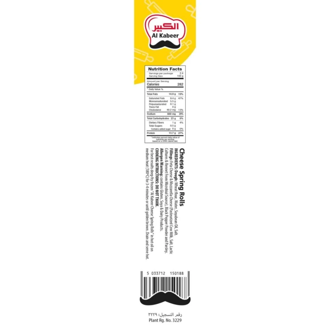 تعتبر رقائق السبرينغ رول بالجبنة من الكبير خيارًا لذيذًا ومريحًا للوجبات الخفيفة. مصنوعة من عجينة السبرينغ رول المقرمشة ومحشوة بجبنة كريمية، تعد هذه السبرينغ رولز مثالية للحفلات أو كمقبلات سريعة. تحتوي كل حزمة على 8 سبرينغ رولز، مما يجعل من السهل مشاركتها مع الأصدقاء والعائلة. تحتوي حشوة الجبنة في هذه السبرينغ رولز على نكهة غنية ومميزة، مع قوام لزج يذوب في الفم. العجينة خفيفة ومقرمشة، مما يوفر التناقض المثالي مع حشوة الجبنة الكريمية. سواء قمت بخبزها أو قليها، فإن هذه السبرينغ رولز ستكون ناجحة بالتأكيد. مع سبرينغ رولز الجبنة من الكبير، يمكنك الإستمتاع بطعم سبرينغ رولز عالية الجودة في راحة منزلك. تعد هذه السبرينغ رولز سهلة وسريعة التحضير، مما يجعلها خيارًا مريحًا للأيام المزدحمة. ما عليك سوى وضعها في الفرن أو قليها، وستحصل على وجبة خفيفة لذيذة جاهزة في وقت قصير.