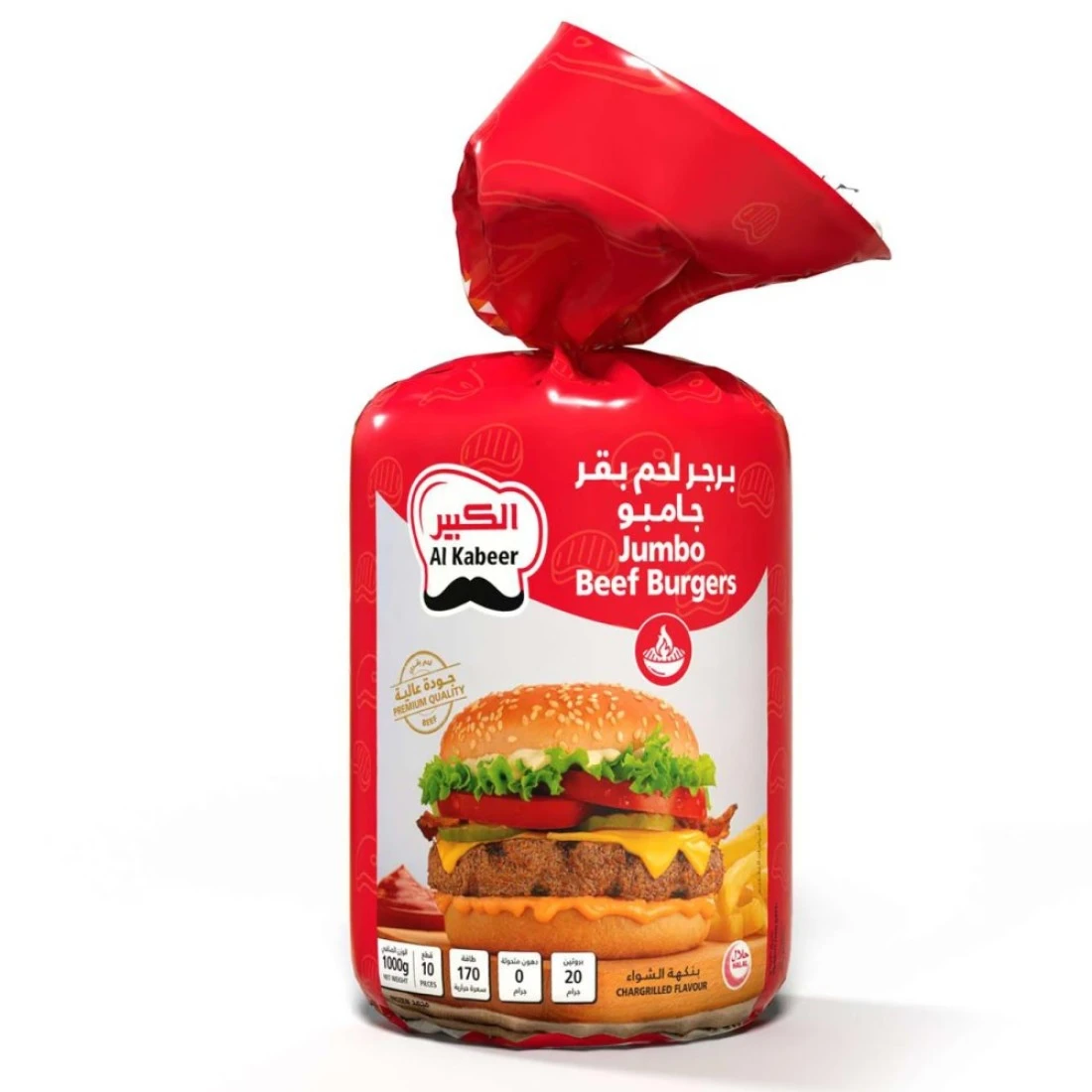 الكبير برغر لحم بقري كبير الحجم بنكهة الفحم مجمد 1 كغ
