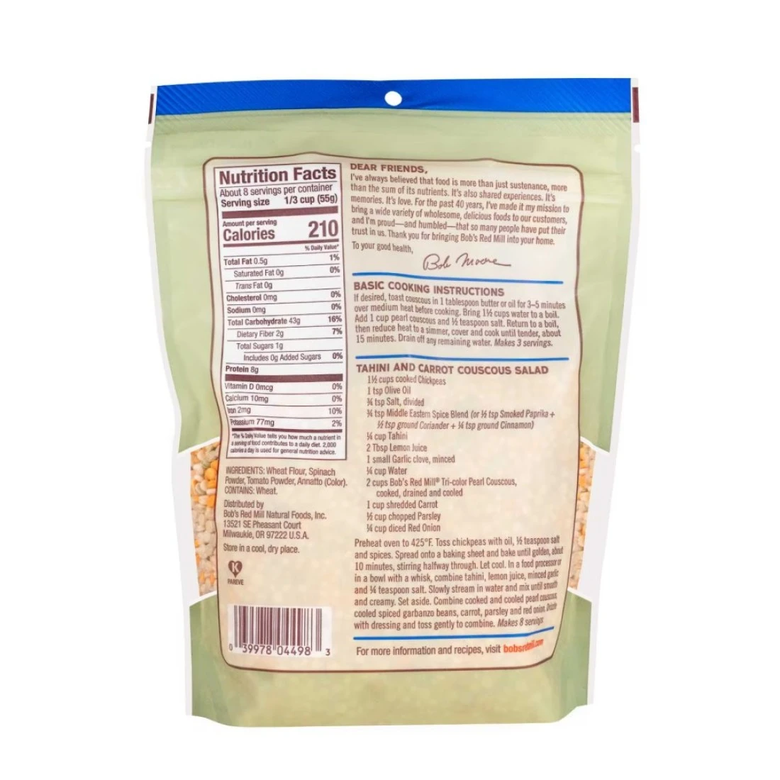 بوبس ريد ميل كسكس ترايكولور بيرل سريع الطهي غير معدّل وراثيًا 454 غرام