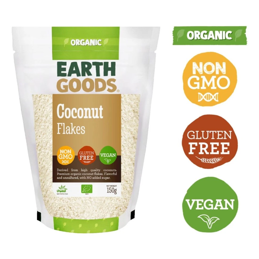 إيرث غودز رقائق جوز الهند عضوية غير معدلة وراثيًا خالية من الغلوتين ونباتية 150 غرام