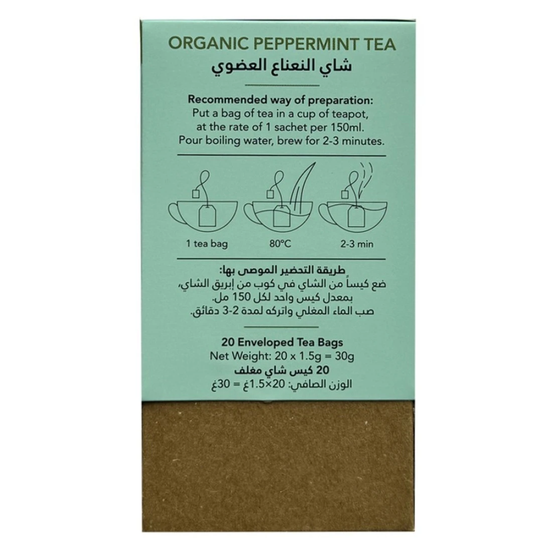 فاميلي هارفست شاي النعناع العضوي في أكياس شاي يقدم تجربة عشبية منعشة ومنشطة في كل كوب. مصنوع من أوراق النعناع العضوي عالية الجودة، هذا الشاي خالٍ من الكافيين ومثالي لأي وقت من اليوم. تحتوي كل علبة على 20 كيس شاي مغلف بشكل فردي، مما يضمن الطزاجة والراحة. استمتع برائحته المهدئة وطعمه البارد، المعروف بفوائده الهضمية وقدرته على تعزيز الاسترخاء. مثالي لطقوس مسائية مريحة أو كمنعش في فترة ما بعد الظهر، شاي النعناع العضوي من فاميلي هارفست هو خيار رائع لعشاق الشاي الذين يبحثون عن خيار طبيعي وعضوي.