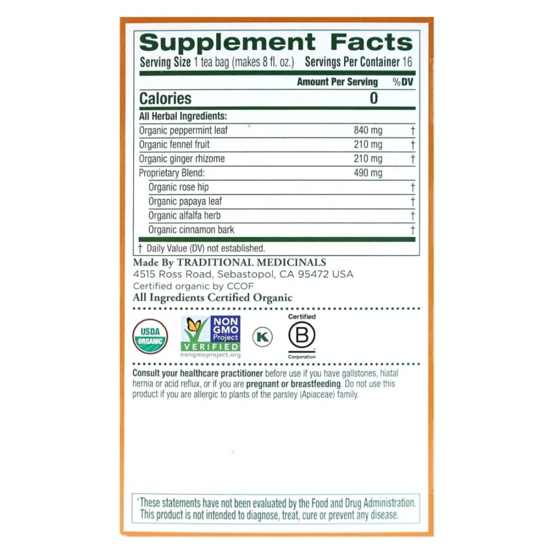 - يعمل شاي إيتر دايجست من شركة ذا ترايدشونال ميديسينالز على تعزيز الهضم الصحي المصنوع من النعناع العضوي.