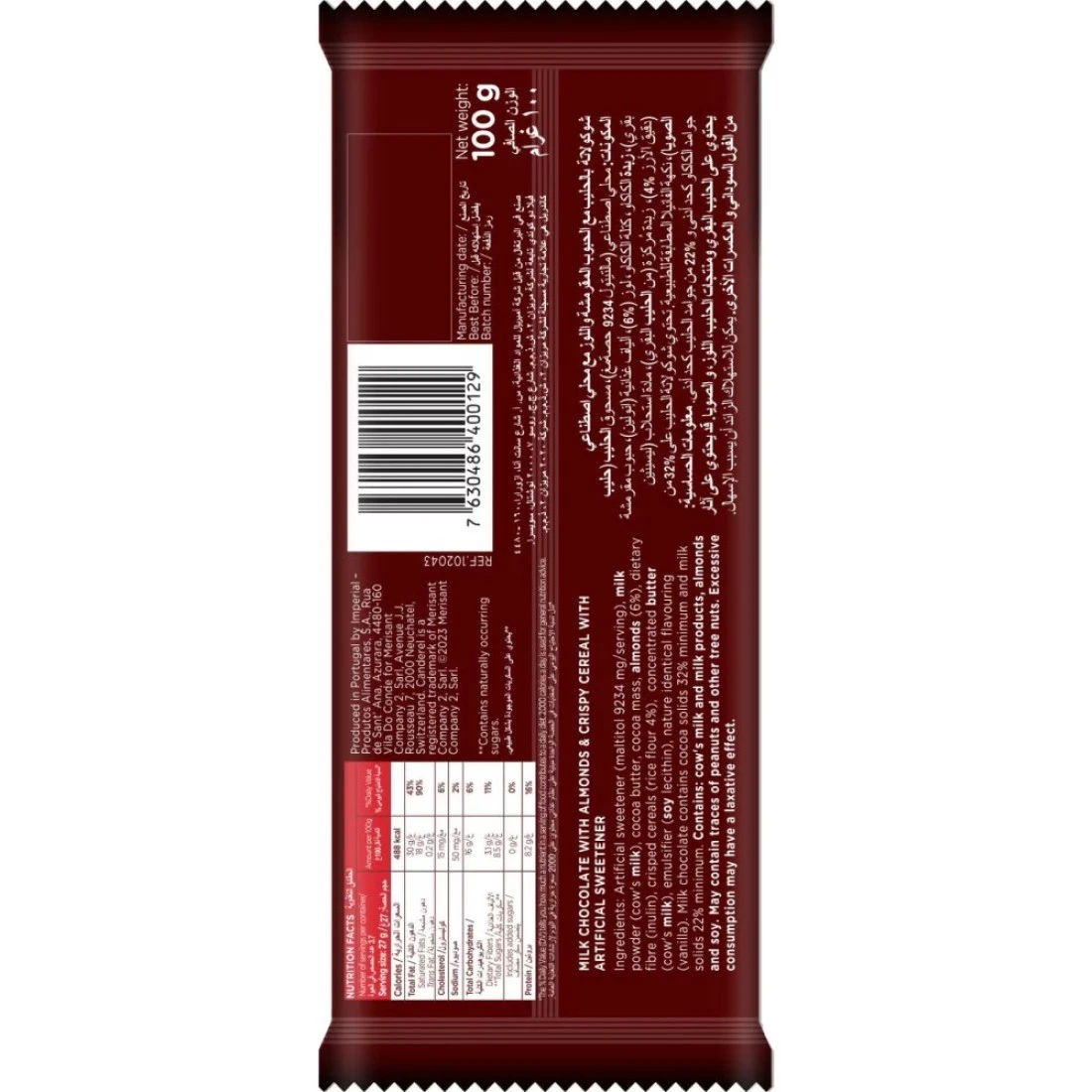 كاندريل ديكادينت شوكولاته بالحليب مع الحبوب المقرمشة واللوزي بدون سكر مضاف 100 غرام