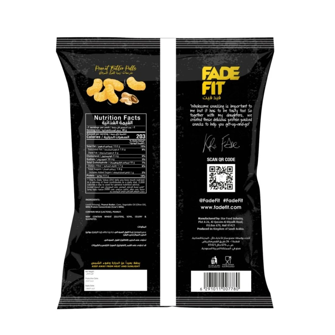 فايد فيت، غني بالبروتين، مقرمشات بزبدة الفول السوداني 40 غرام